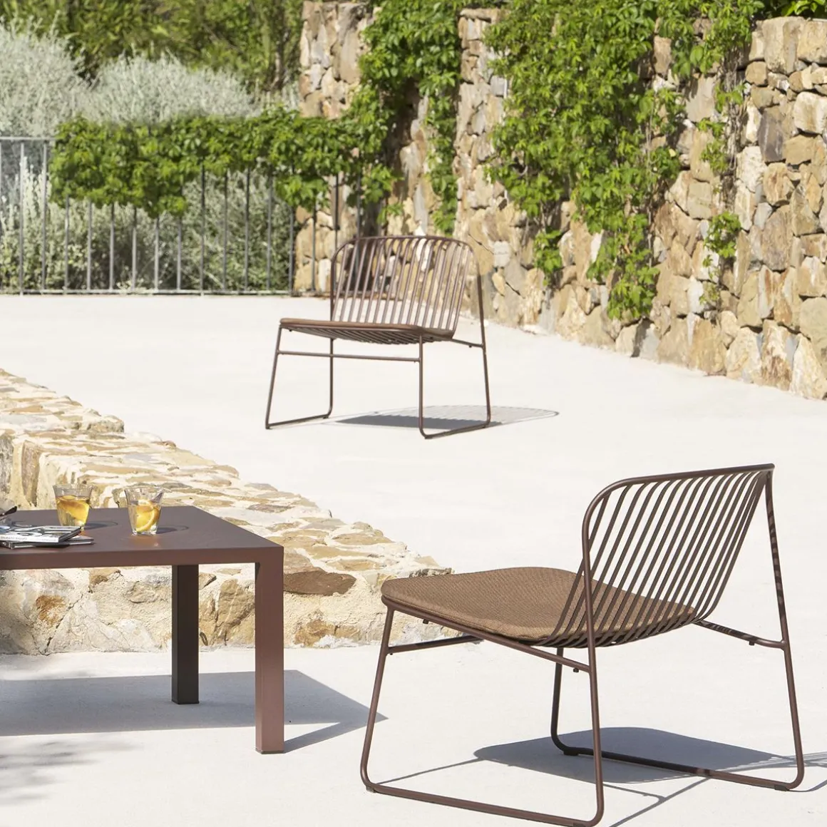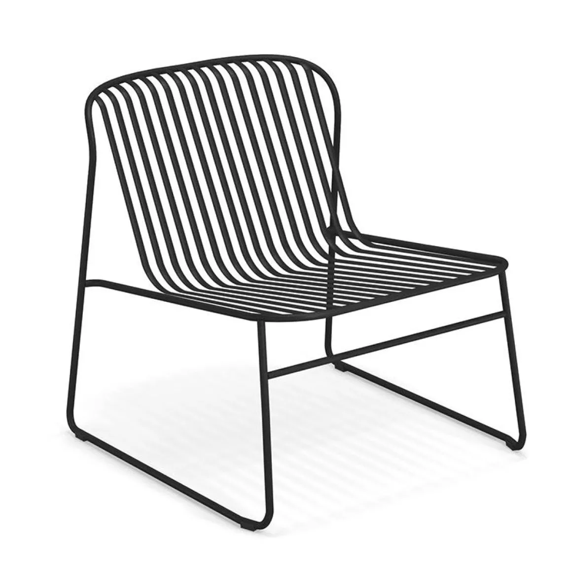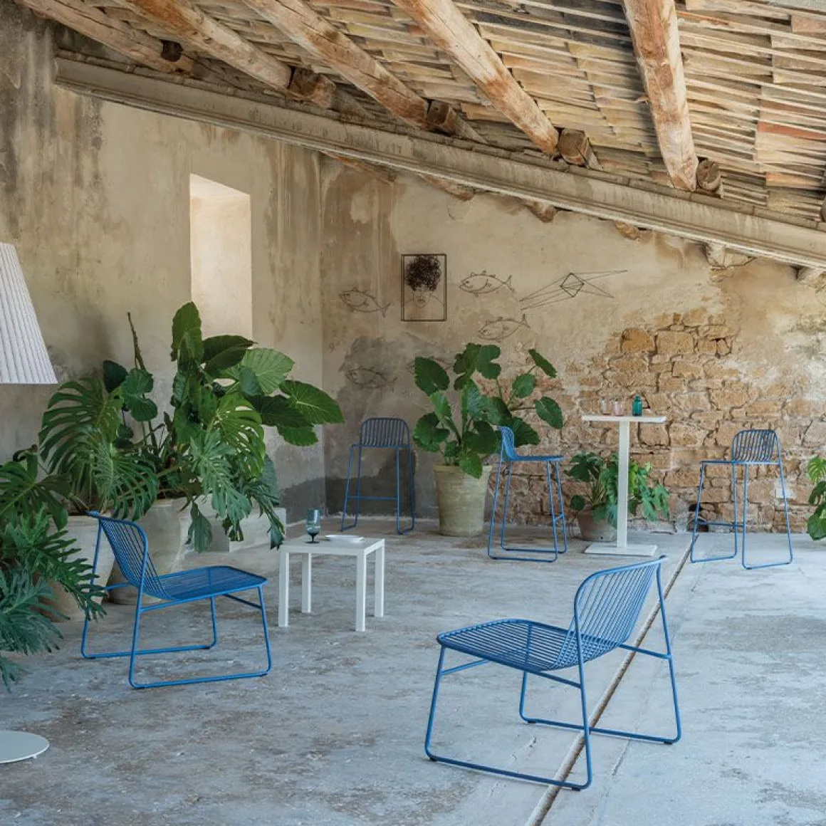 La collection de sièges en acier Riviera, dessinée par Lucidi/Pevere, comprend différents éléments: chaise, fauteuil, transat et tabouret; sa caractéristique principale: un signe graphique minimal et raffiné. La structure, entièrement soudée, est réalisée en tubulaire et barres à profil arrondi (en demi-amande) d’acier Fe360. Revêtement en Emu-Coat (cataphorèse + laquage).