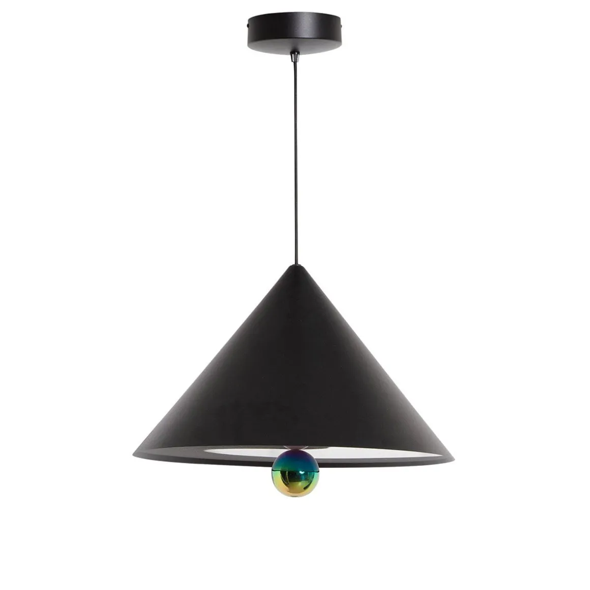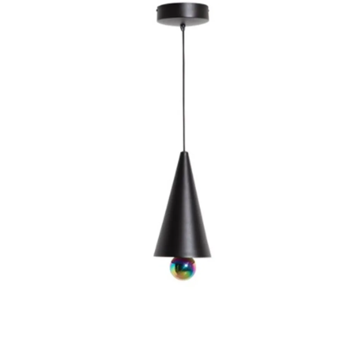 Cherry LED suspension de Petite Friture. Une suspension au design simple et minimale : un cône d’aluminium sous-monté d’une sphère. Cet ensemble parvient à créer un subtil rapport de lumière entre le diffuseur et la boule à la finition miroitée. La suspension Cherry évolue en intégrant un système lumineux LED moins consommateur d’énergie, recyclable et plus écologique. L’ensemble de la collection Cherry est fabriquée en France.