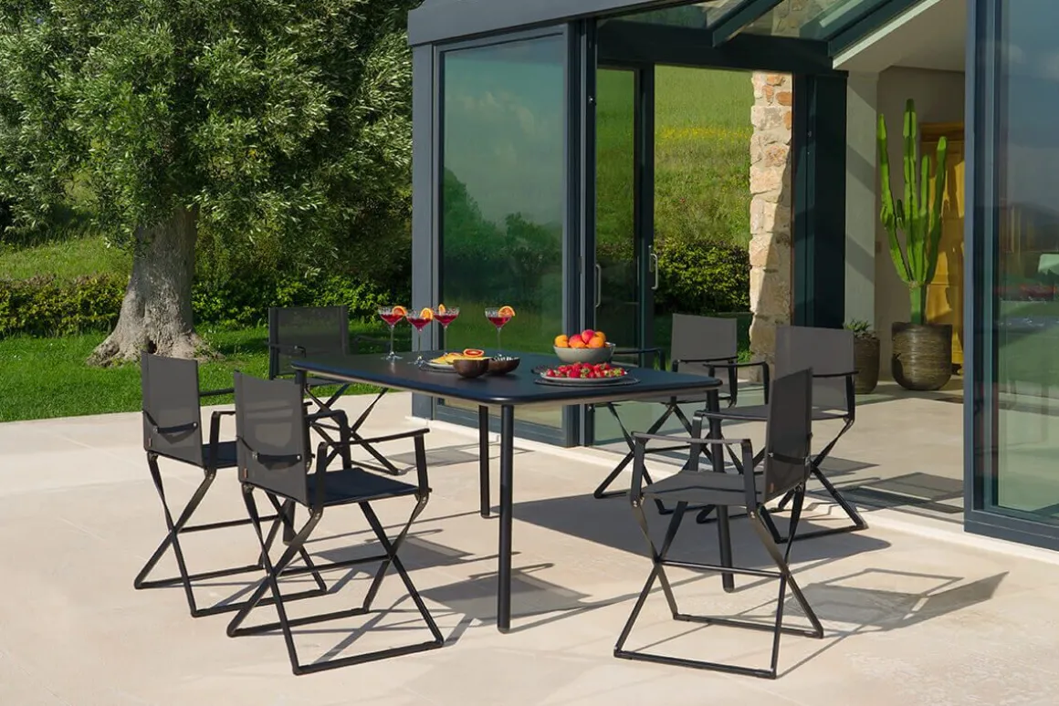 À la fois minimaliste et recherché, le fauteuil de metteur en scène Ciak, signé Stefan Diez, est réalisé en aluminium extrudé avec des éléments en inox, associés à un tissu technique spécial extérieur. Formes recherchées, attention au détail et association de matériaux technologiques sont ses principales caractéristiques, pour donner vie à un produit solide et intemporel, adapté à différents espaces.