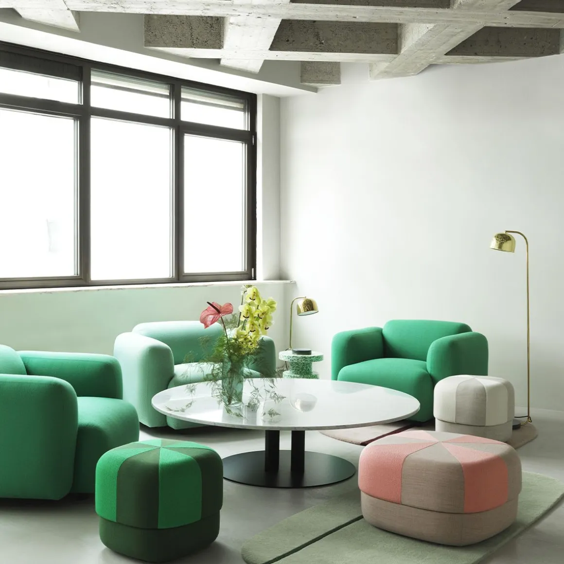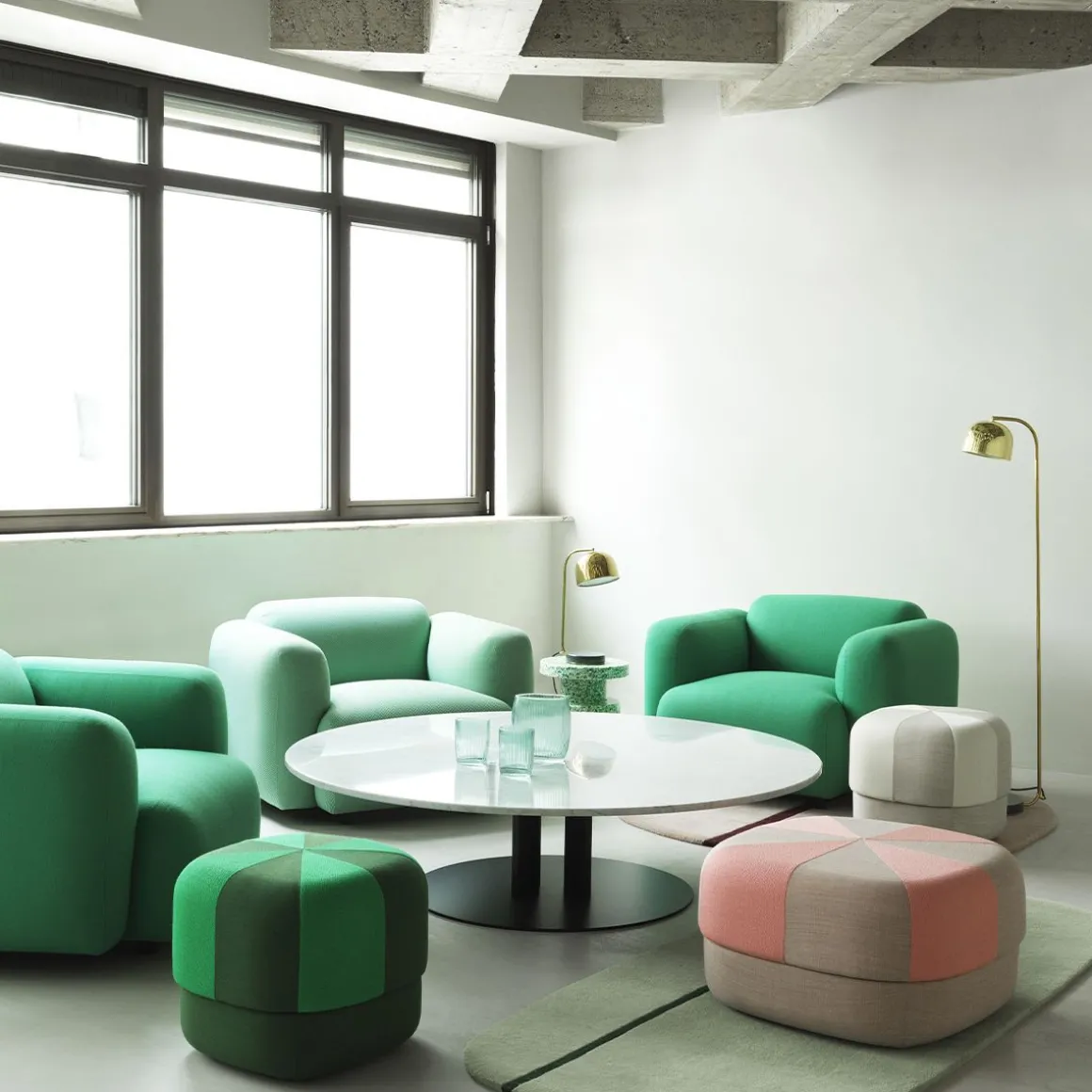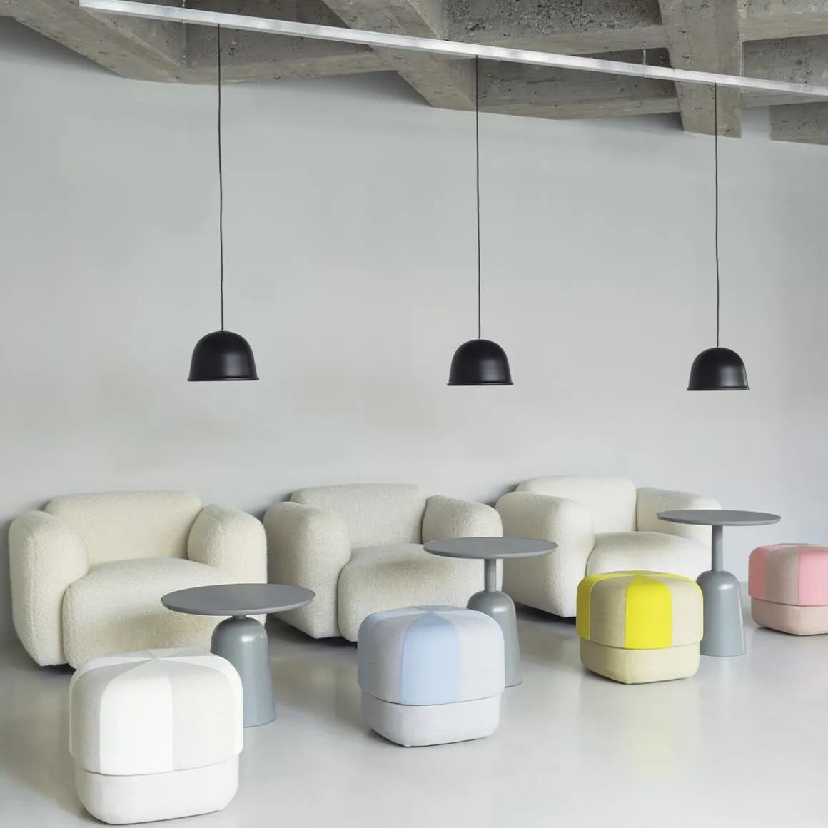Le nouveau membre de la collection Circus. La surface en velours classique du pouf a été remplacée par deux textiles en laine dans des tons complémentaires, ressemblant aux rayures distinctives d’une tente de cirque. Le motifs à rayures classique mais original ajout du caractère au design simpliste et insuffle une nouvelle vie à la populaire collection de poufs. Circus permet de créer des environnements invitants et tactiles qui apportent un élément de chaleur et de profondeur à tout décor. C’est un meuble polyvalent qui peut servir d’extension à votre canapé, d’assise autour d’une table basse, ou encore d’assise décorative dans la chambre, le couloir ou le dressing. De plus, Circus Pouf est disponible en deux tailles différentes, ce qui lui permet de s’intégrer parfaitement dans n’importe quel espace.