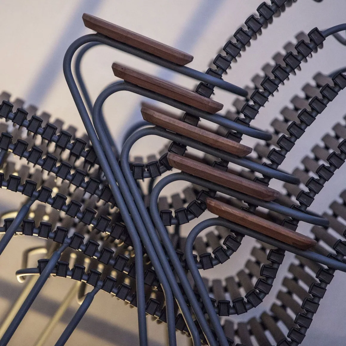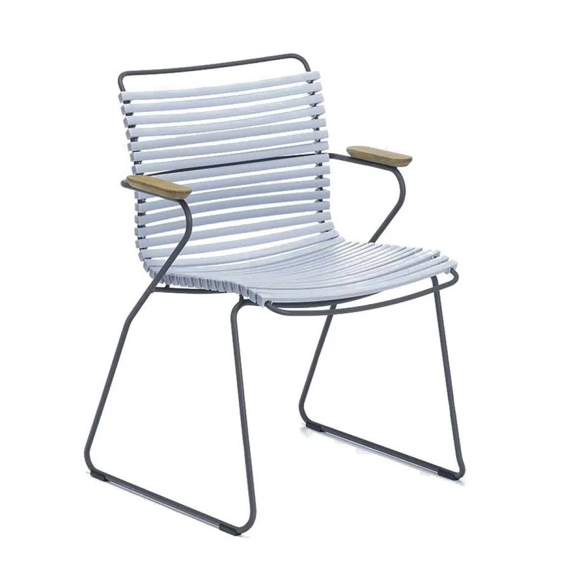 Click est une chaise simple, honnête et ergonomique. Sa répétition autour d’une table rend la scène magnifique, et, parce que les lamelles peuvent être remplacées, vous pouvez mélanger et changer les couleurs aussi souvent que vous le souhaitez.