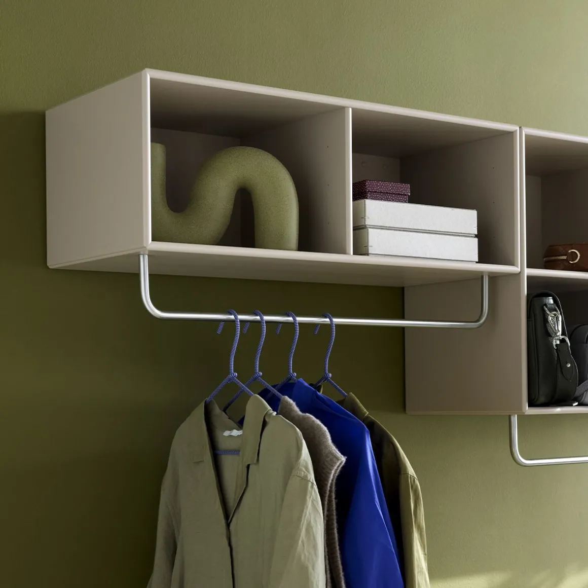 L’étagère à chapeaux COAT est parfaite pour ranger les manteaux dans l’entrée ou dans l’armoire. COAT est une version moderne de l’étagère à chapeaux composée d’une armoire à deux compartiments ainsi que d’un portant à vêtements fixé en dessous. L’étagère à chapeaux est parfaite comme solution de rangement pour le petit hall ou comme solution de garde-robe polyvalente pour la chambre à coucher.