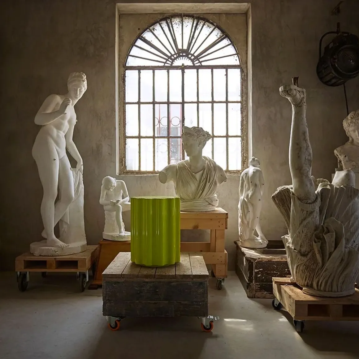 Le tabouret Colonna appartient à la collection « Kartell goes Sottsass – A Tribute to Memphis » lancée pour rendre hommage au mouvement fondé par le maître du design Ettore Sottsass. Colonna se distingue par sa polyvalence : elle peut en effet être utilisée soit comme tabouret soit comme table d’appoint.