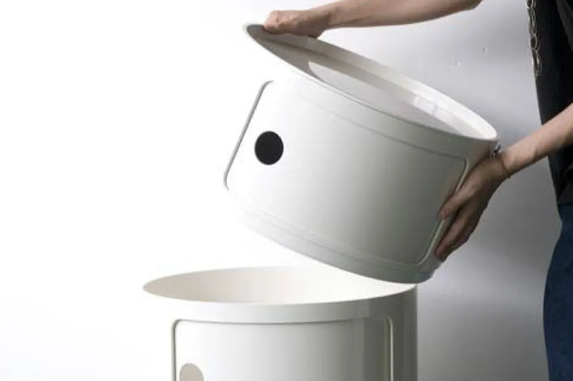 Componibili est un élément de rangement pensé par Anna Castelli Ferrieri en 1968 pour Kartell. Ces éléments ont été conçus afin de répondre à diverses exigences d’utilisation et pour trouver place dans toutes les pièces de la maison, salle de bain, chambre, salon etc.. Flexibles, fonctionnels, pratiques, les éléments sont produits depuis plus de trente ans et ont reçu de multiples marques de reconnaissance pour la valeur et l’innovation du projet et sont aujourd’hui exposés au Museum of Modern Art de New York et au Centre Pompidou à Paris. Disponible en trois coloris différents.