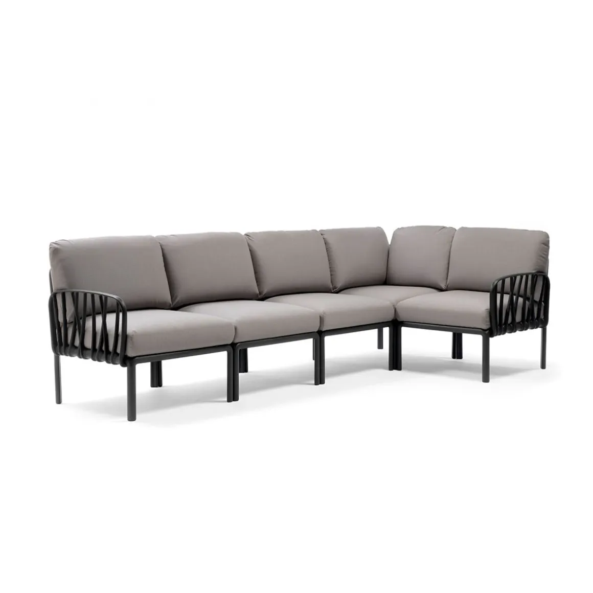 Inspiré des branches des arbres, Komodo 5 est un système modulaire d’assises pour extérieur, doté d’une structure en résine fibre de verre et de rembourrages, pouvant être composé de manière extraordinairement flexible et fabriqué de façon personnalisée selon l’espace, les goûts et les exigences.
