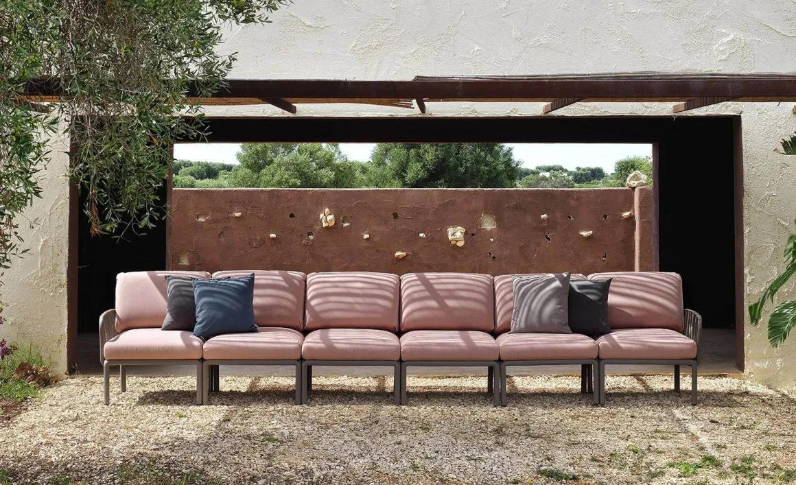Coussins : rose, gris, bleu (adriatic), gris bleu (ghiaccio), avocat, vert (giungla), beige (canvas) ou beige chaud (tech panama)