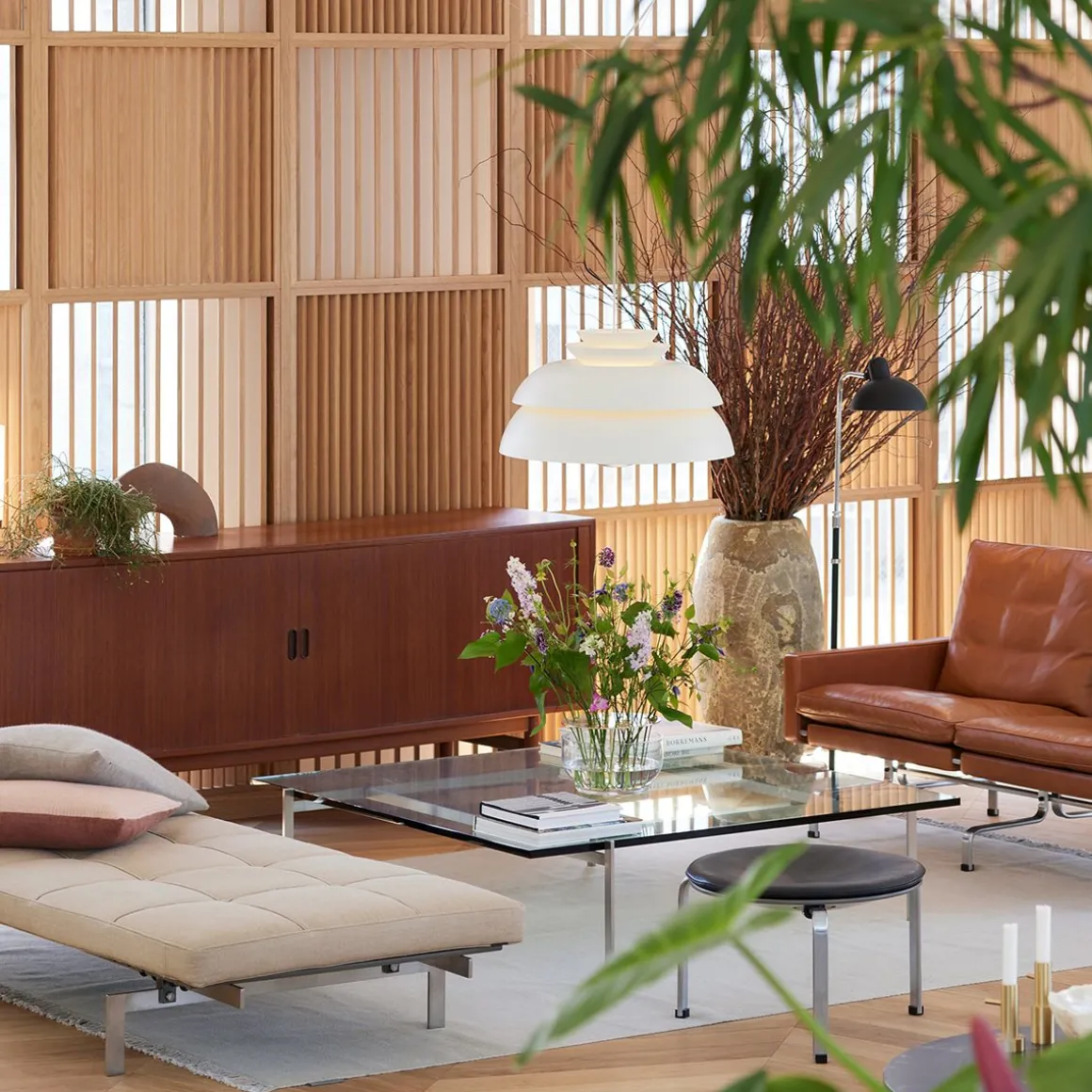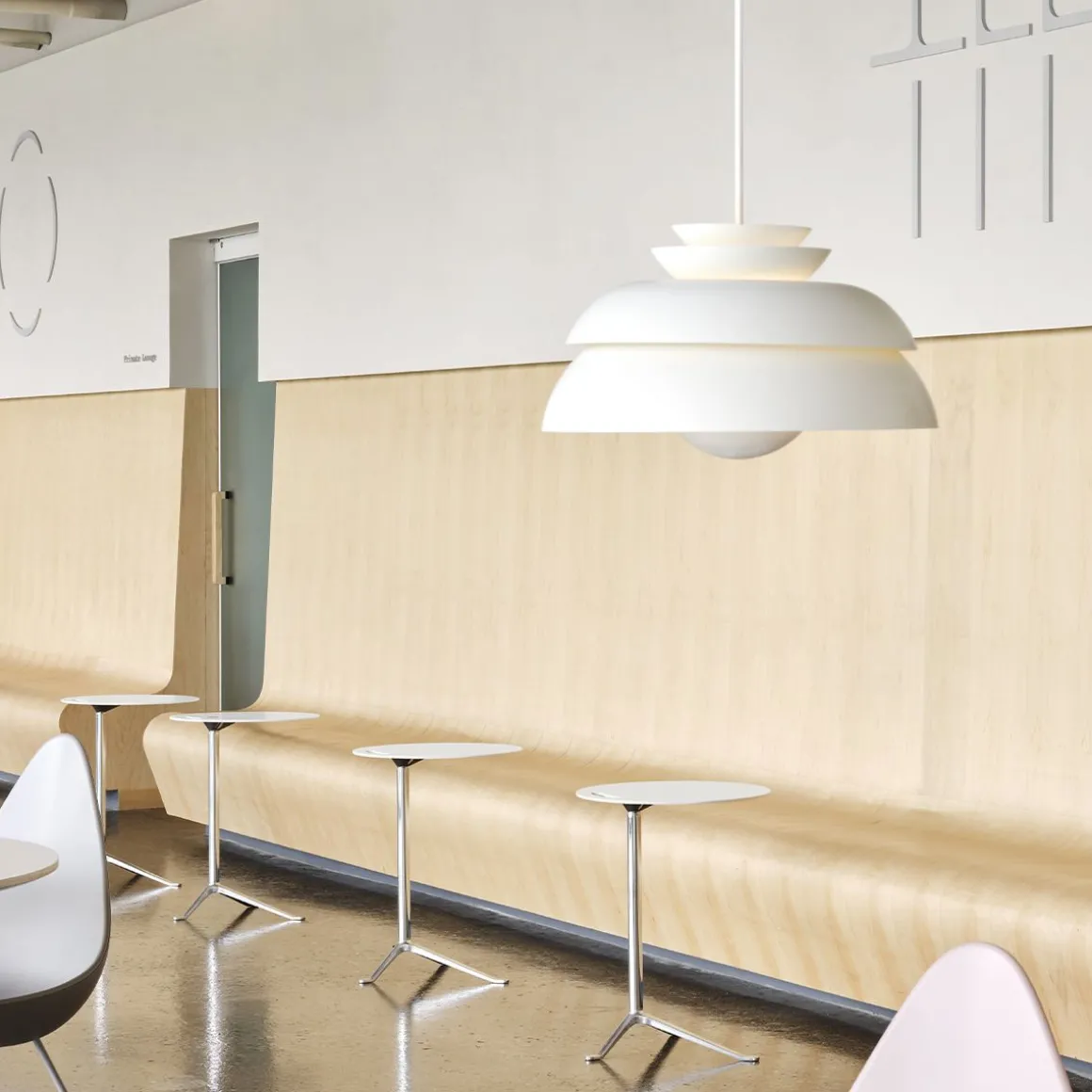 La célèbre Concert™ est un incontournable du design danois. La configuration unique de son abat-jour, caractéristique de la philosophie d’Utzon, rappelle son œuvre majeure, l’Opéra de Sydney. Un diffuseur en verre à trois niveaux diffuse une lumière agréable et uniforme, faisant de la Concert une pièce maîtresse idéale dans un salon ou une salle de réunion.