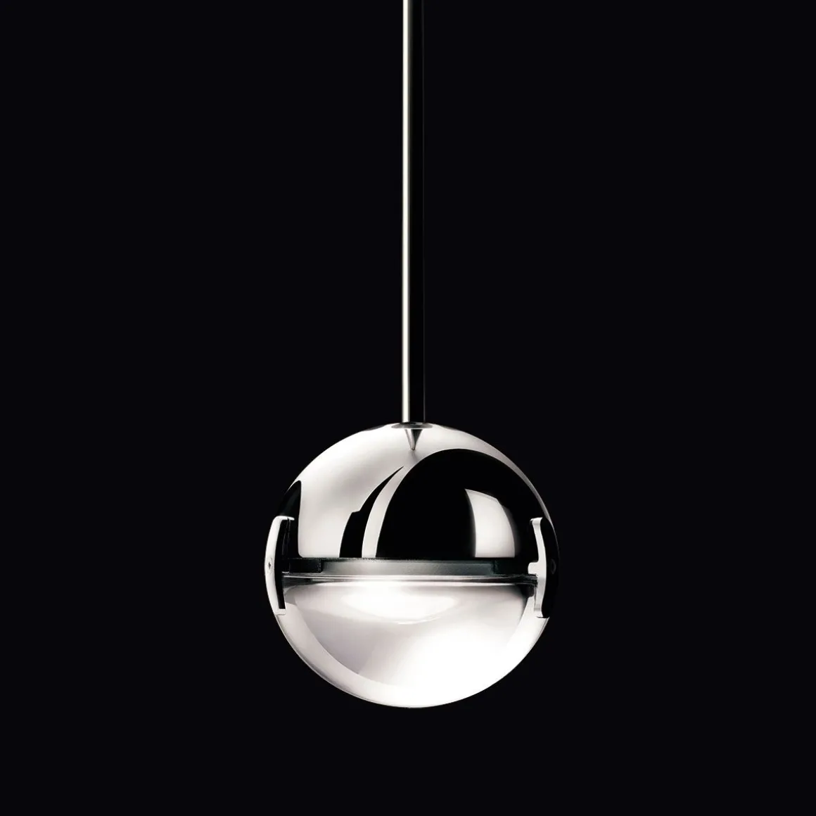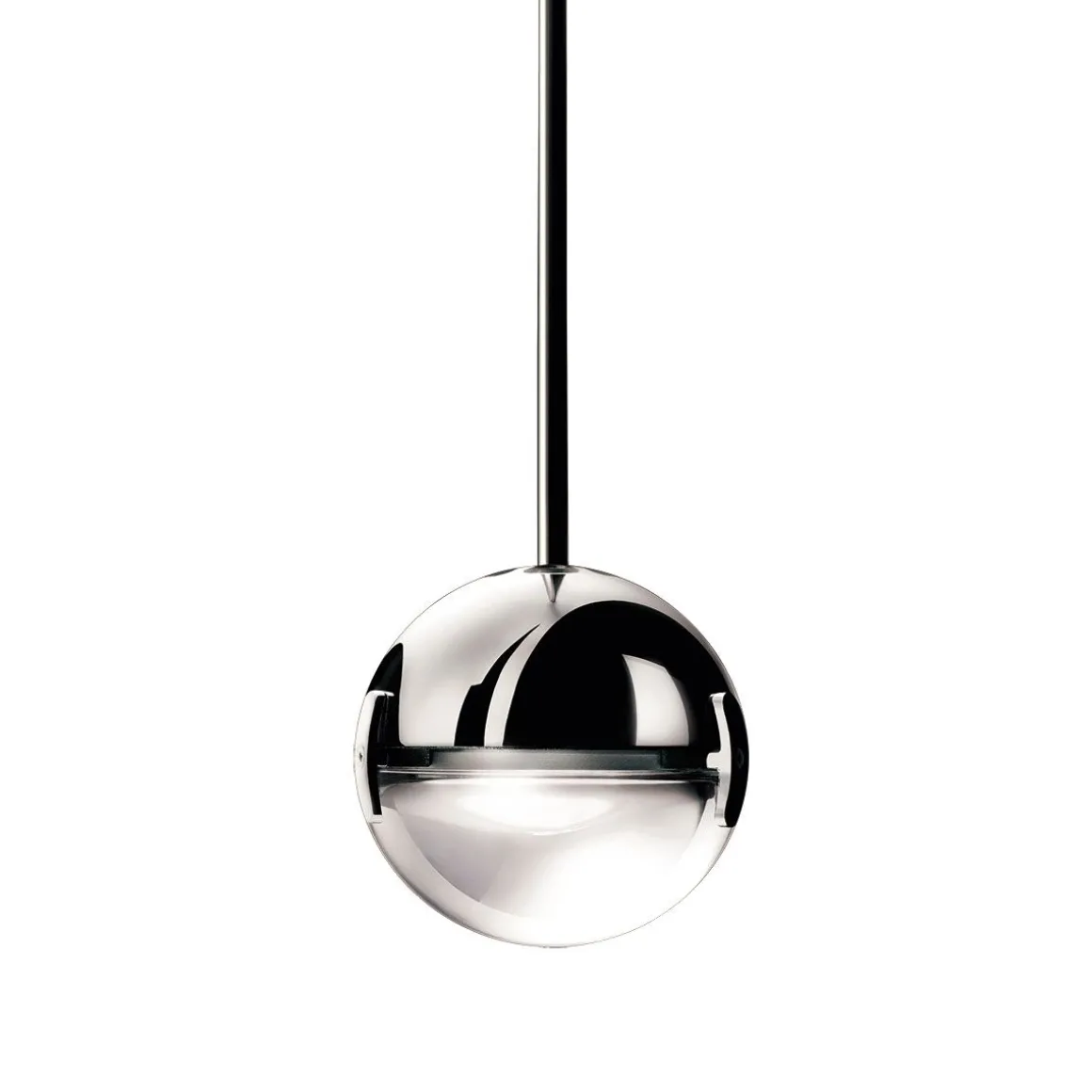 Convivio est une lampe à suspension, formé par une petite sphère moitié lentille, moitié chrome ou nickel satiné. Disponible avec lentille transparente pour une lumière plus vivante ou avec lentille satinée pour une lumière plus douce. Lampe LED d’intérieur avec lumière directe et localisée.