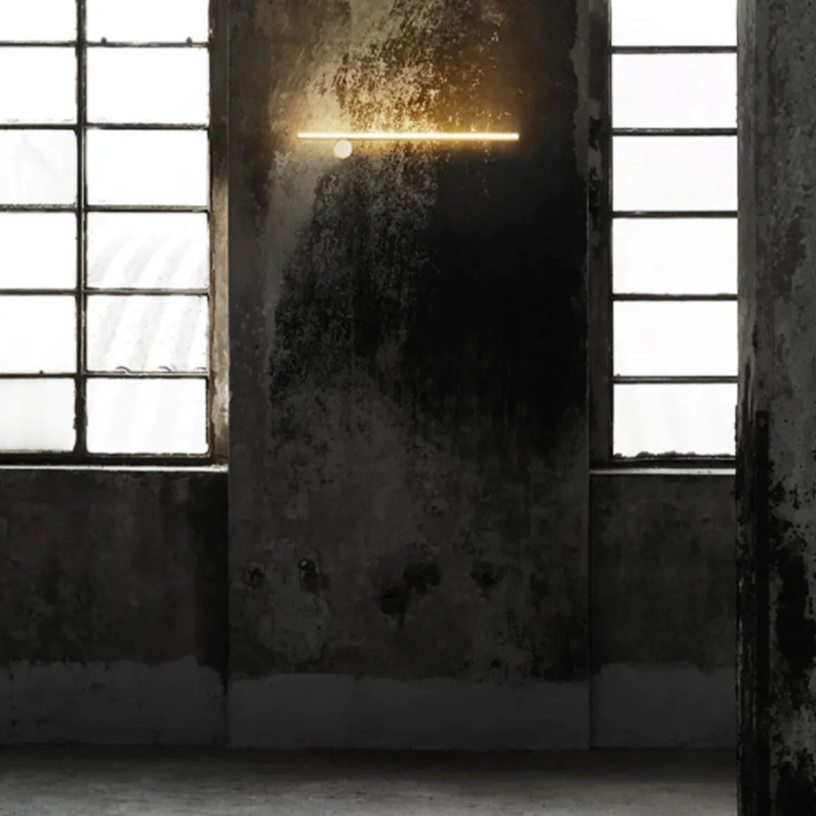 Appareils d’éclairage à lumière diffuse pour installation murale composés d’un mât horizontal (modèle Wall 1) ou d’un mât vertical et horizontal (modèle W2). Chaque mât est constitué d’un corps en aluminium extrudé usiné et anodisé coloris champagne et d’un diffuseur en silicone optique platinum strié intégré (CRI 90). Chaque modèle comprend sa propre rosace dont l’électronique intégrée permet l’utilisation de différents systèmes de variation.