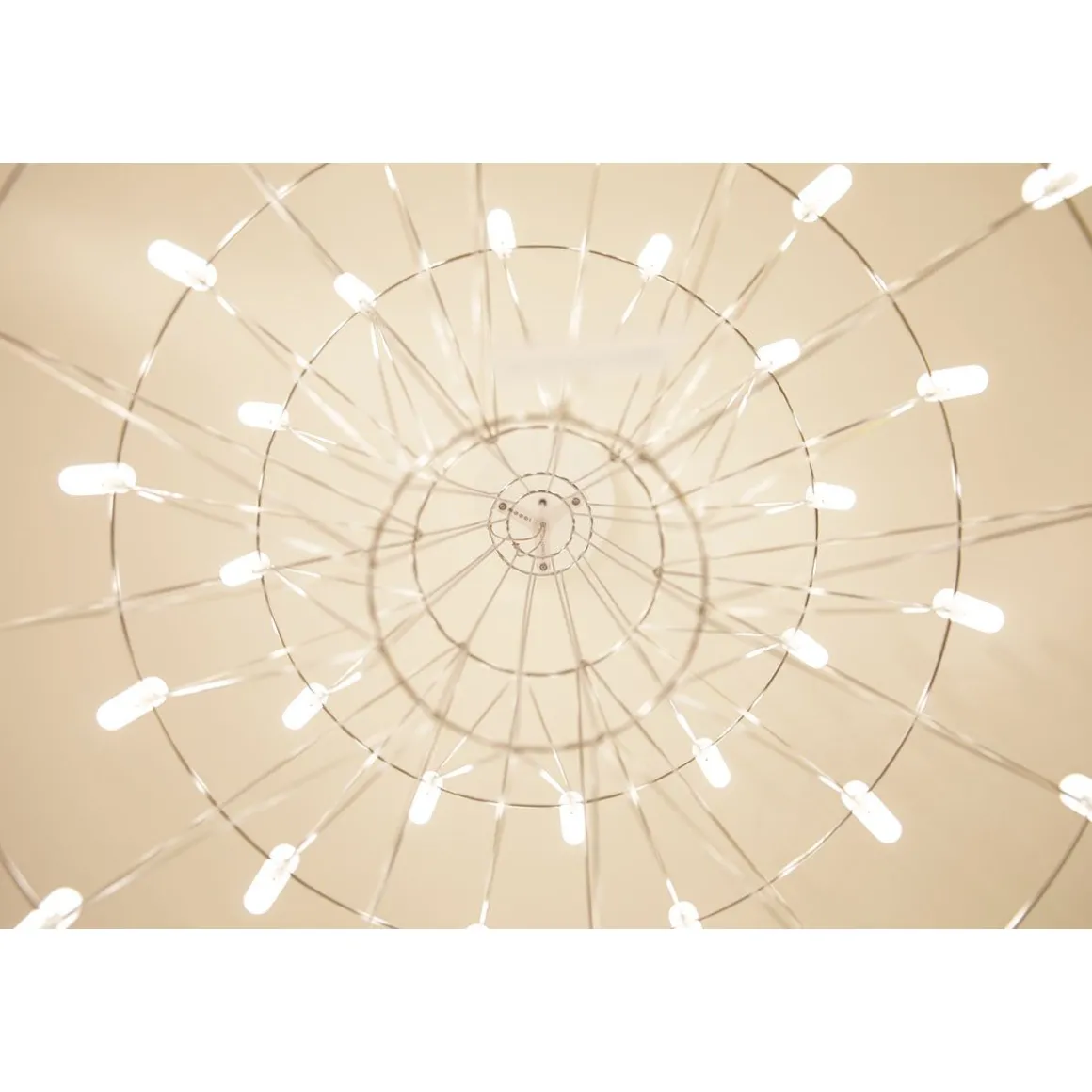 Les traits de danseuse de ballet de Coppélia, avec des mouvements sinueux, une image délicate dans les airs, qui inspire le mouvement du fluide dans le design de Coppélia de Miyake Suspension. La danse gracieuse, mis en scène par la structure métallique tridimensionnelle, conduit le spectateur à des dizaines de lumières LEDs, qui définissent le contour et la lueur magique de nouvelle interprétation de Miyake d’un lustre classique. le lustre Coppélia grande taille vous surprendra par sa finesse et sa structure géométrique changeante en fonction de l’orientation, à contempler sous tous les angles.
