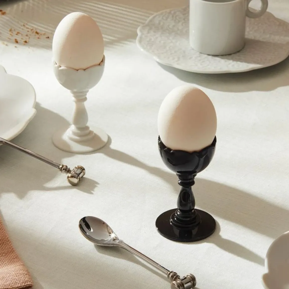 Coquetier Dressed avec Cuillère de Alessi par Marcel Wanders. Dressed est une collection caractérisée par un décor délicat, dissimulé dans les endroits les moins visibles des objets. Vous l’observez avec attention et vous découvrez, là où vous vous y attendriez le moins, un décor qui en orne le design, en apportant aux objets une élégance unique et discrète.