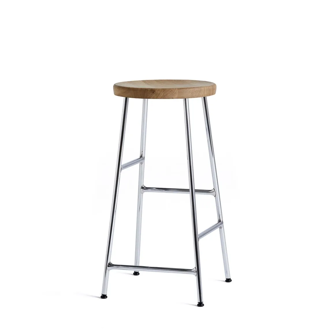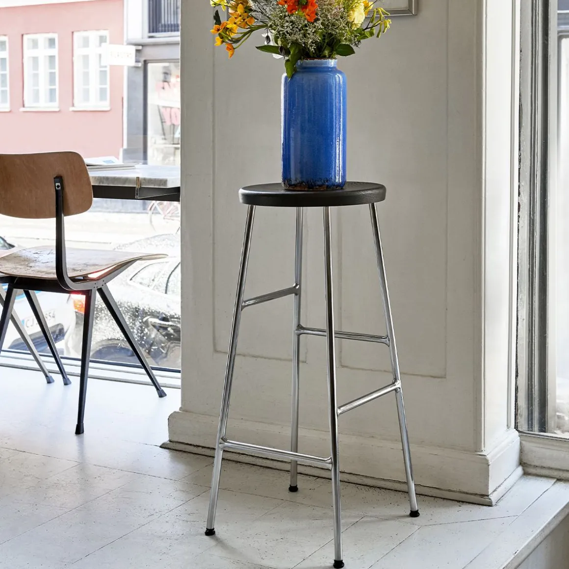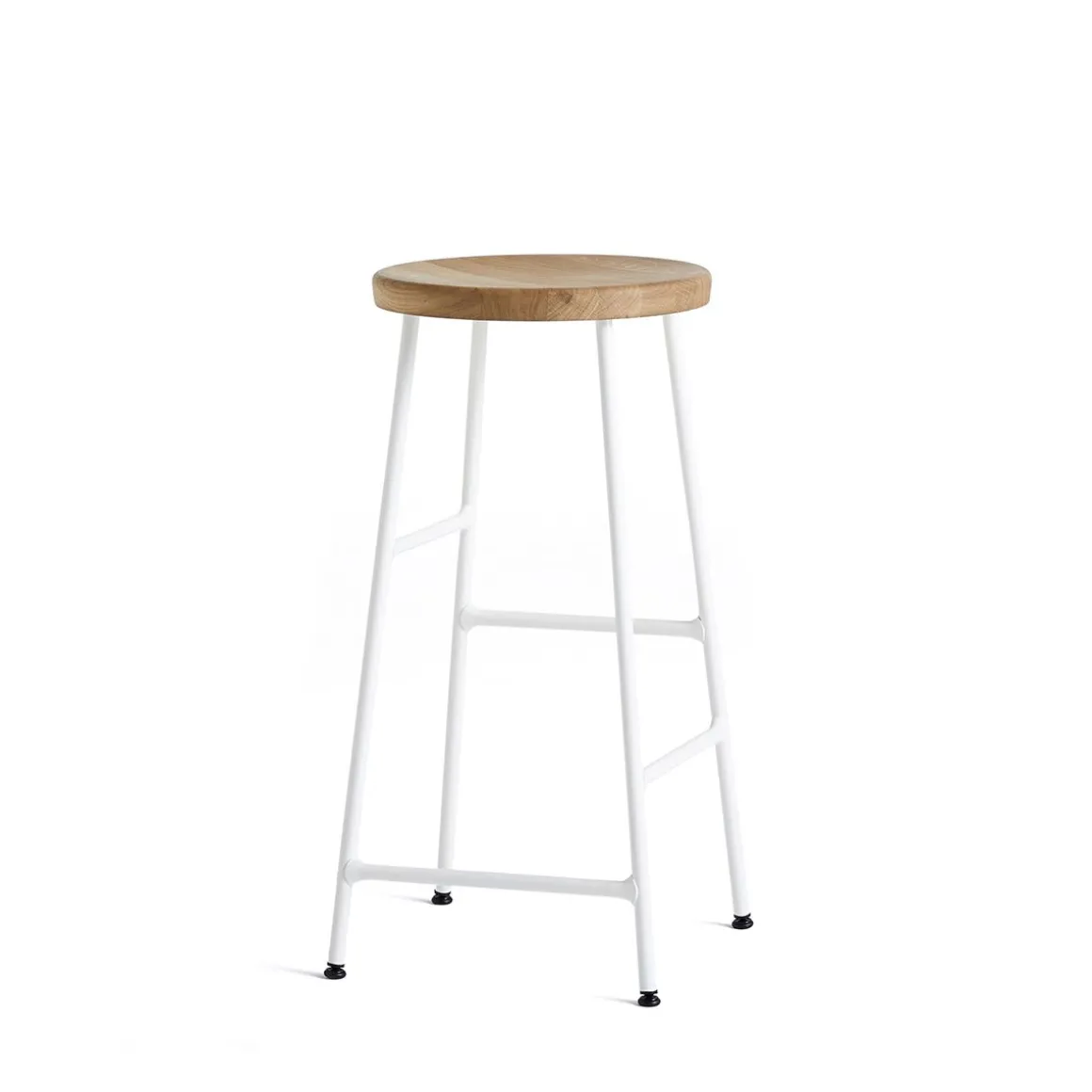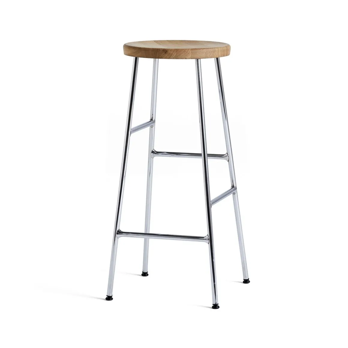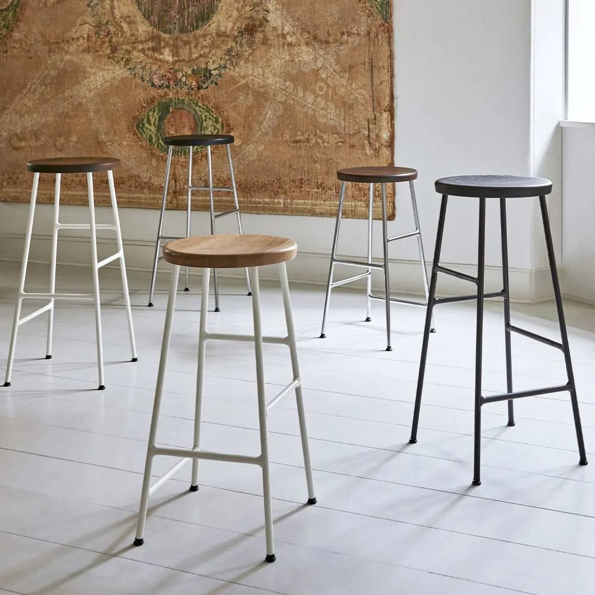 Le tabouret de bar Cornet de Jonas Trampedach est un tabouret de bar classique utilisant une technique innovante de tube d’acier inspirée des porte-vélos. Le siège rond en chêne massif repose sur une base en acier élancée, créant un équilibre intéressant de proportions et de profils. Les tabourets sont disponibles en deux hauteurs différentes, avec un choix de finitions en bois pour le siège et des options de couleur chromée ou thermolaquée pour les pieds. Les tabourets conviennent aux bars, aux îlots et aux plans de travail dans de nombreux environnements privés et publics.
