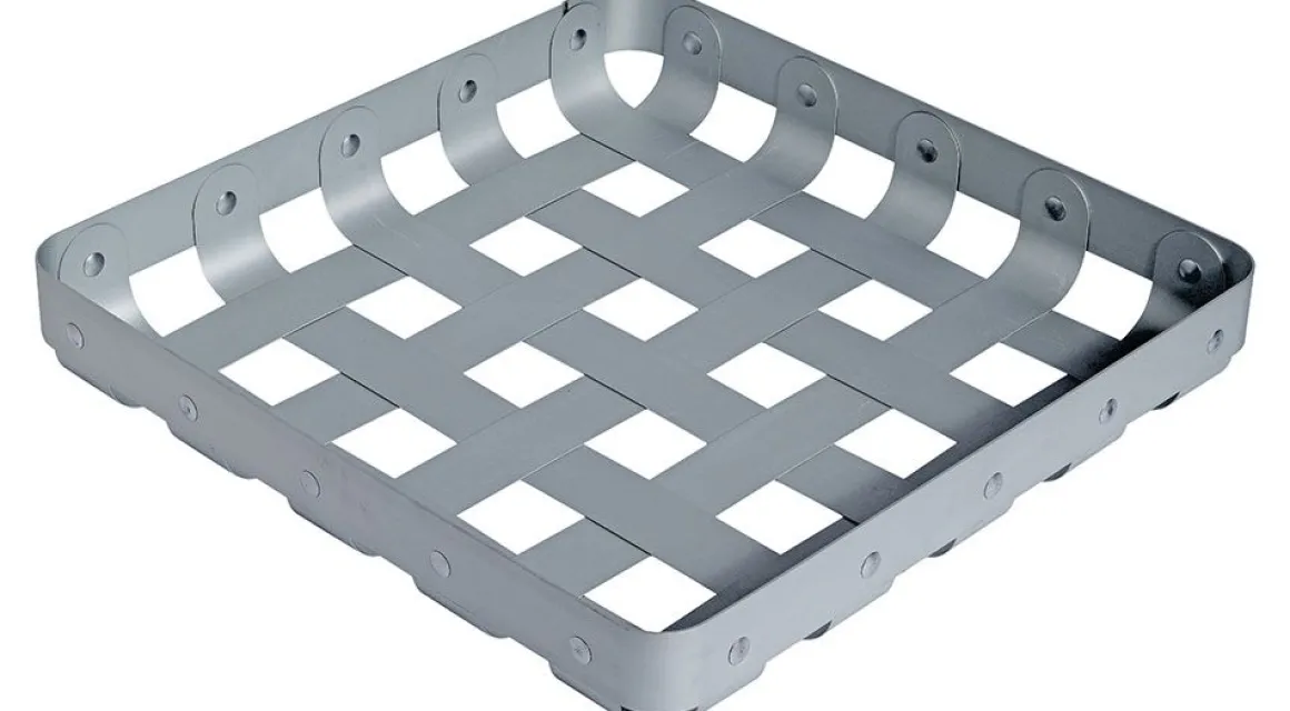 CrissCross de Alessi par Eero Aarnio. Polyvalent, léger, recherché : un panier multi-usage, un allié précieux pour gérer le désordre dans la maison. Récipient multifonction en aluminium anodisé. Le CrissCross, crée par Eero Aarnio, léger et spacieux, est un complément de décor très polyvalent, que l’on peut facilement déplacer et insérer dans les différentes pièces de la maison. Il peut être un grand porte-revues, posé sur un meuble ou bien directement au sol, mais aussi un grand surtout de table, que l’on utilisera de façon purement ornementale.