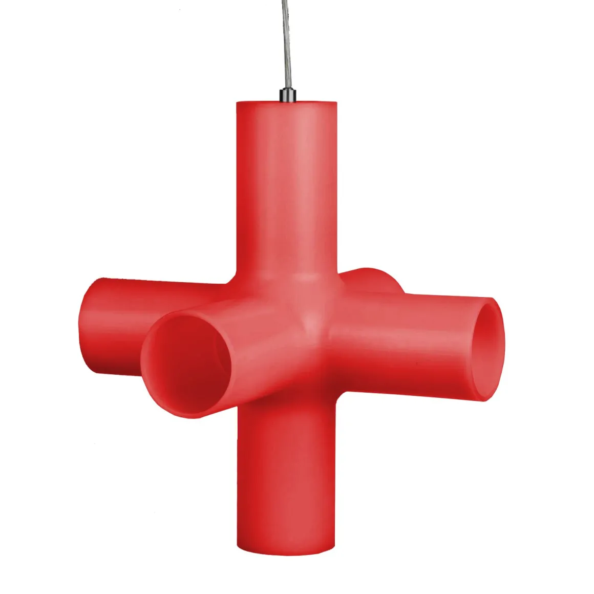 Suspension Crosslight par Dark, créée par les designers Jan Melis et Ben Oostrum. Cette lampe a une très grande valeur ornementale, sa forme consiste en une croix pendante à double lampe.