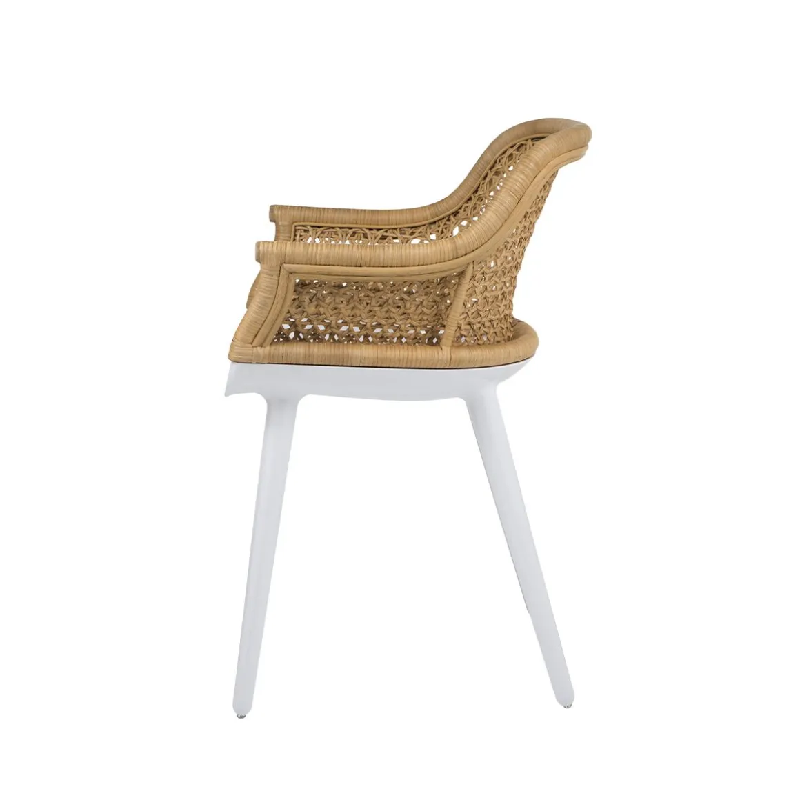 Cyborg Elegant de Magis est un petit fauteuil créé par le designer Marcel Wanders. Inventé en 1960 par l’homme de science, inventeur et musicien Manfred Clynes, rendu populaire par de nombreux romans et films de science-fiction, le terme cyborg indique un organisme qui réunit des éléments naturels et artificiels. Une synthèse que le designer Marcel Wanders interprète comme l’expression d’une recherche continue de nouvelles combinaisons, dans un monde où inventer quelque chose de vraiment nouveau tient de l’impossible. C’est ainsi que naît Cyborg, une chaise avec coque en polycarbonate, très résistante en matière plastique offrant de nombreuses possibilités, sur laquelle on peut appliquer des dossiers en différents matériaux: du polycarbonate au osier, du bois massif au multiplis, aux dernières versions avec revêtement en tissu ou cuir. La dernière évolution d’une chaise à la fois poétique et technologique, accueillante et inattendue, s’adaptant aux contextes les plus variés.