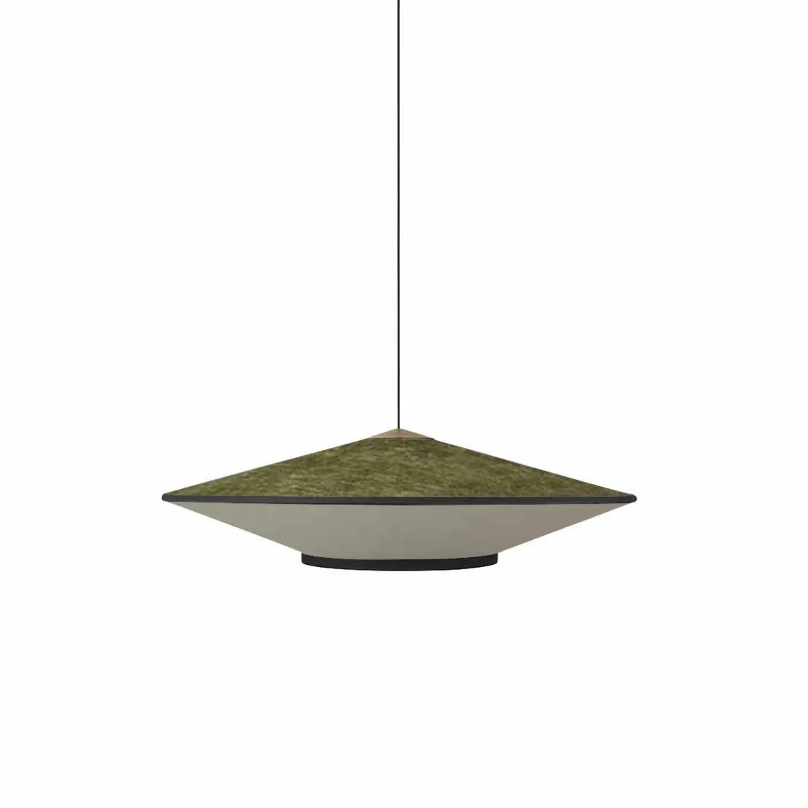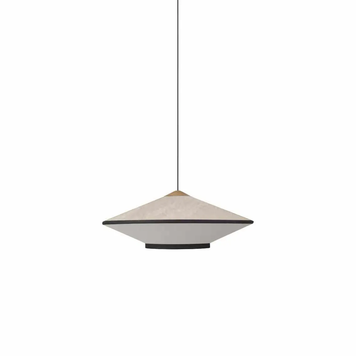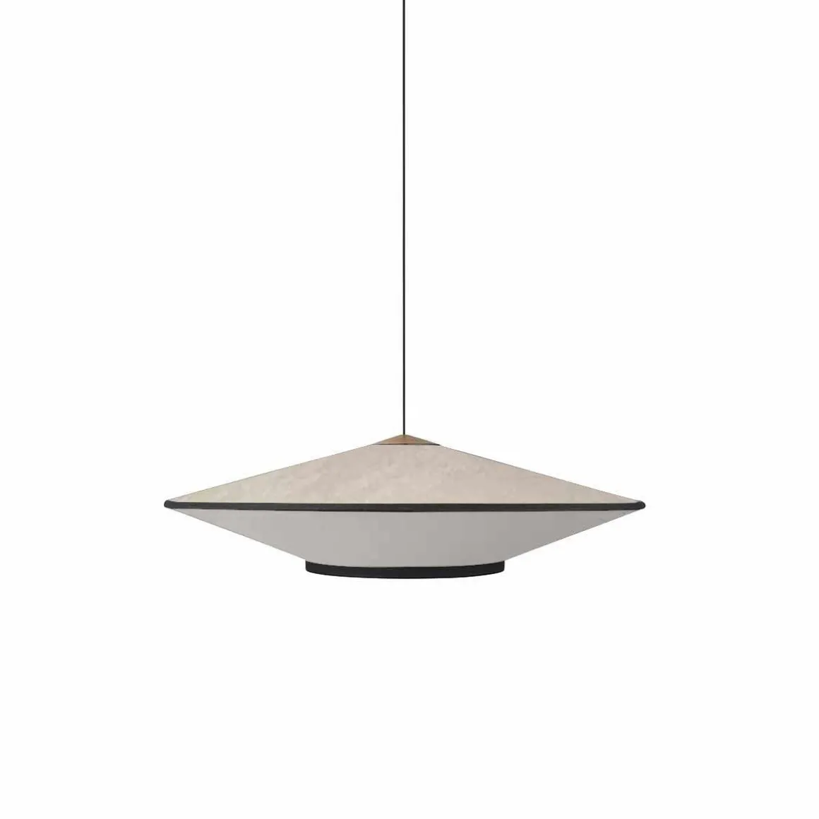 Cymbal est une suspension créée par Jette Scheib. Ces formes géométrique sous forme de cymbales rajouteront une touche japonisante à vos intérieurs. Ce luminaires se compose en deux matières, le dessus en velour et le dessous en tissus et ces deux parties sont séparées par une ligne noir.