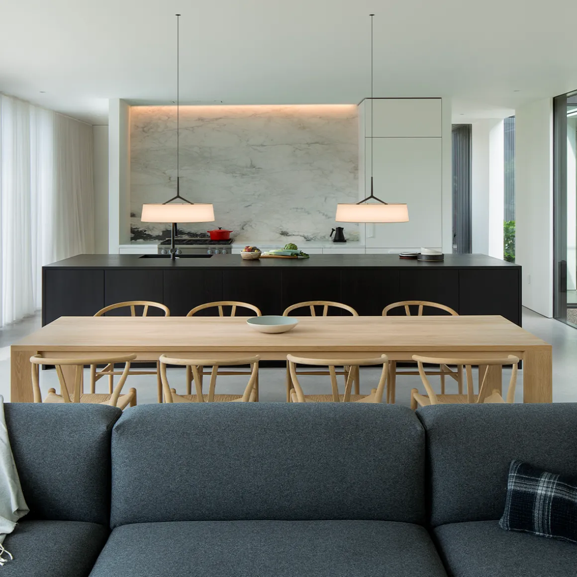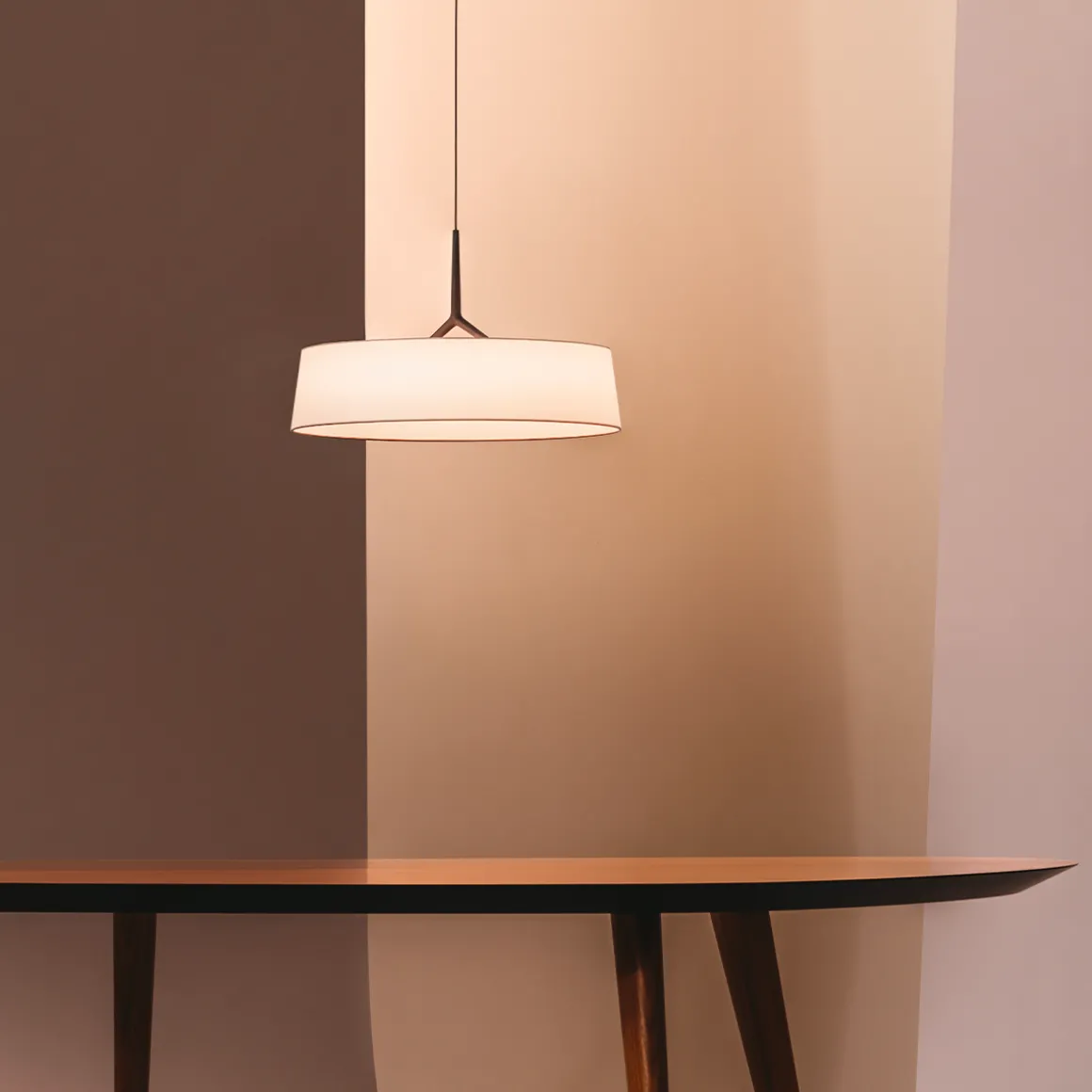 Dama de Vibia par Ludovica+Roberto Palomba. Alliant qualité technique et raffinement dans un esprit de convivialité et d’intimité, la collection Dama marie le charme de la tradition à l’élégance d’un design contemporain. Retenue par un câble ultrafin presque invisible, la suspension Dama présente un caractère éthéré, sa forme gracieuse flottant au-dessus des têtes tel un corps céleste.