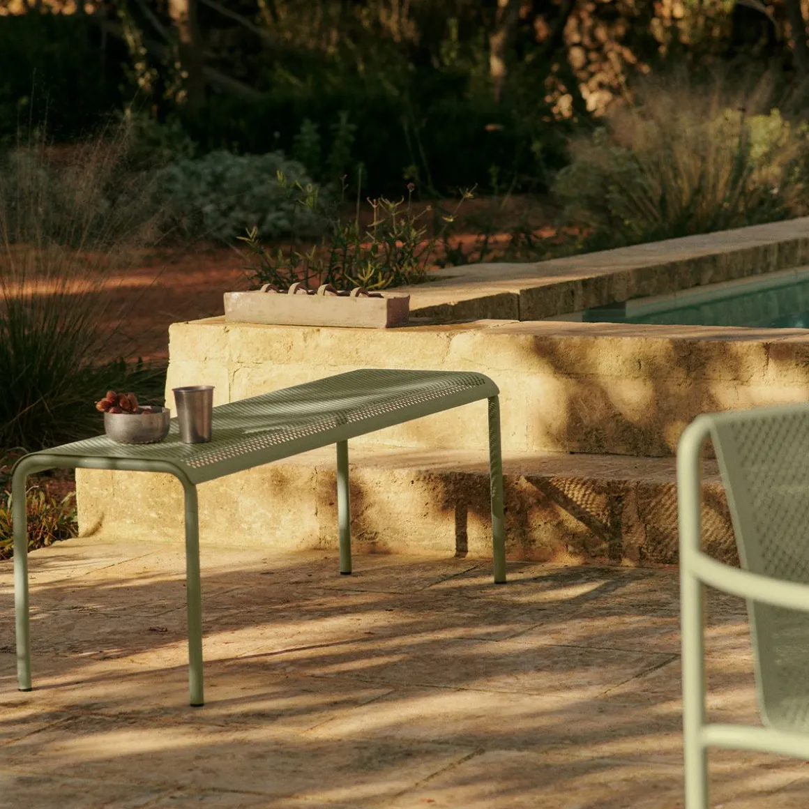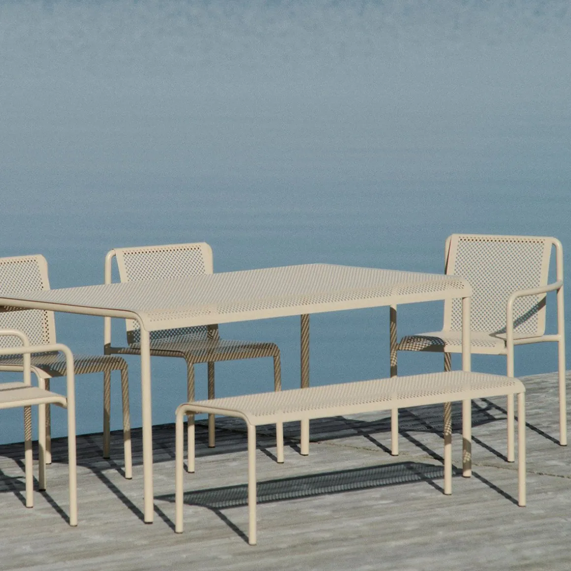 Inspirée par la beauté de la lumière du soleil filtrant à travers les feuilles, la collection Dapple apporte un sentiment de tranquillité aux espaces extérieurs. Le banc Dapple est fabriqué en acier galvanisé enduit de poudre qui garantit durabilité et protection contre les éléments tout en conservant une esthétique élégante. Avec sa forme aérée et légère et son motif perforé distinctif, le banc Dapple est à la fois pratique et élégant.