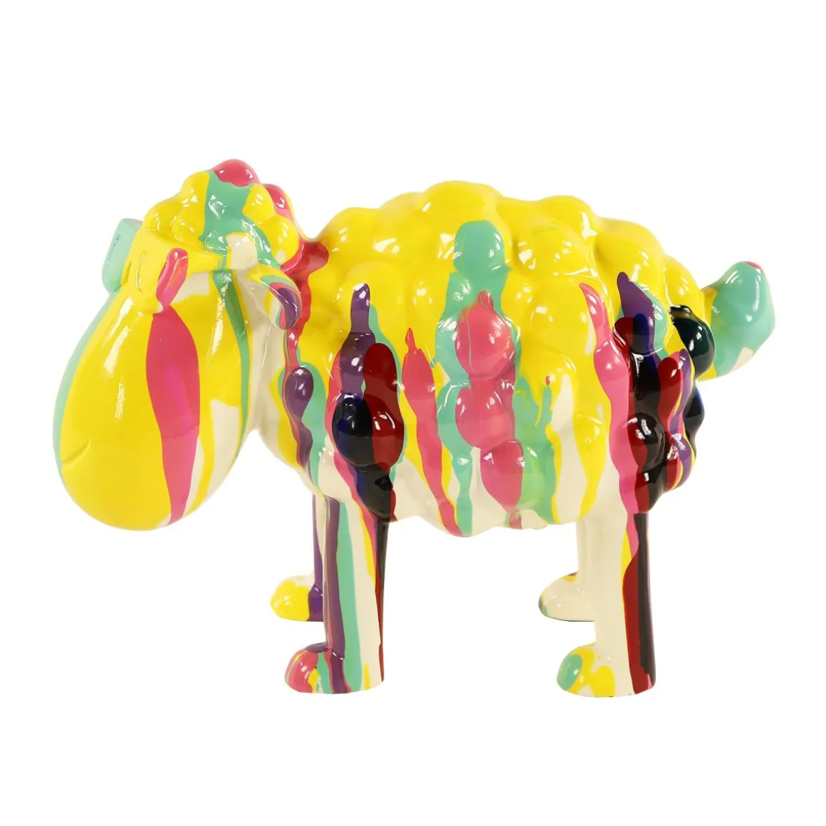 Cette pièce est une explosion de couleurs, caractéristique du style Pop Art d’Artypopart. La peinture coulante (drip painting) sur la toison de Deniro apporte une énergie et un dynamisme inégalés, faisant de cette statue un véritable point focal joyeux. En plus de son esthétique décalée, Deniro véhicule un message écologique fort, rappelant son rôle d’agent d’entretien écologique ! Les chèvres, qui se régalent de mauvaises herbes et escaladent tout sur leur passage, sont l’alternative parfaite et amusante à la tondeuse à gazon. Deniro apporte ainsi un message de simplicité et de nature dans votre foyer.