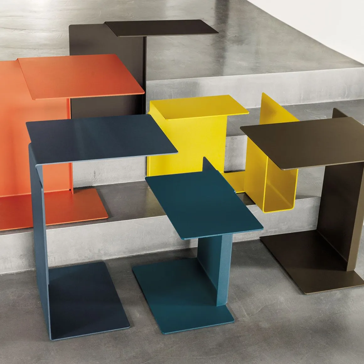 Composée d’une plaque d’acier pliée, sa forme simple et pratique vous permettra de l’utiliser comme bon vous semble et de la combiner à d’autres tables de la collection.