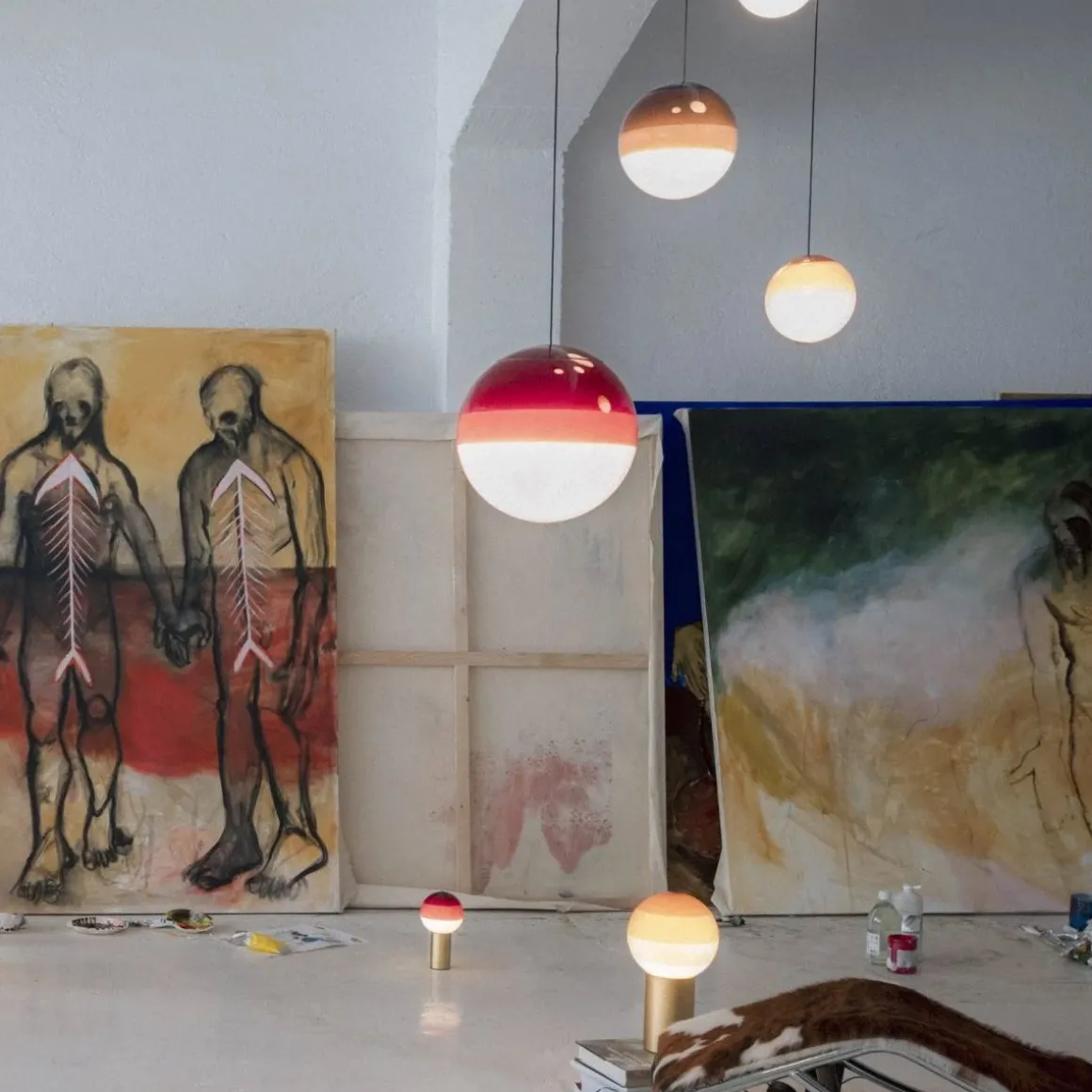 Matériaux : verre soufflé blanc avec différentes couches de peinture, couvercle polycarbonate