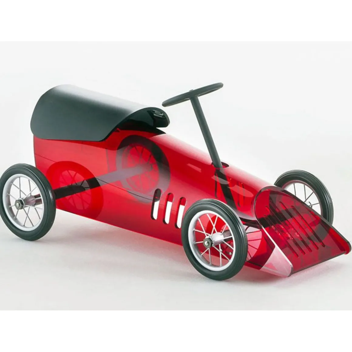 Cette petite voiture rouge et noire, inspirée d’un modèle de voiture de course rétro aborde un design totalement moderne et épuré. Ultra déco, ce véhicule signé Kartell et Piero Lissoni laisse apparaître une carrosserie en PMMA rouge transparent et une structure interne en métal noir. Ayant toutes les caractéristiques d’une voiture de Course, elle séduira les tout-petits et ravira les plus grands par son charme de l’ancien temps. Ce jouet sera parfait pour accompagner les kids dans leurs premiers pas sur « la route » de la maison.