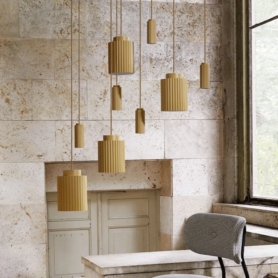 La suspension Donna projette la sensation d’un textile plissé doux, bien qu’elle soit en fait fabriquée à partir d’aluminium fin et léger. Sa forme s’inspire des tissus chics utilisés dans la haute couture et des défis de créer cette douceur en utilisant un matériau dur au lieu d’un textile. Une belle pièce polyvalente avec une personnalité expressive; également à l’aise dans tous les environnements. Pour les grands espaces, la Donna Line et la Donna Circle peuvent être sélectionnées en quatre, six ou huit variantes de lampe, projetant une lumière directe chaude vers le bas.