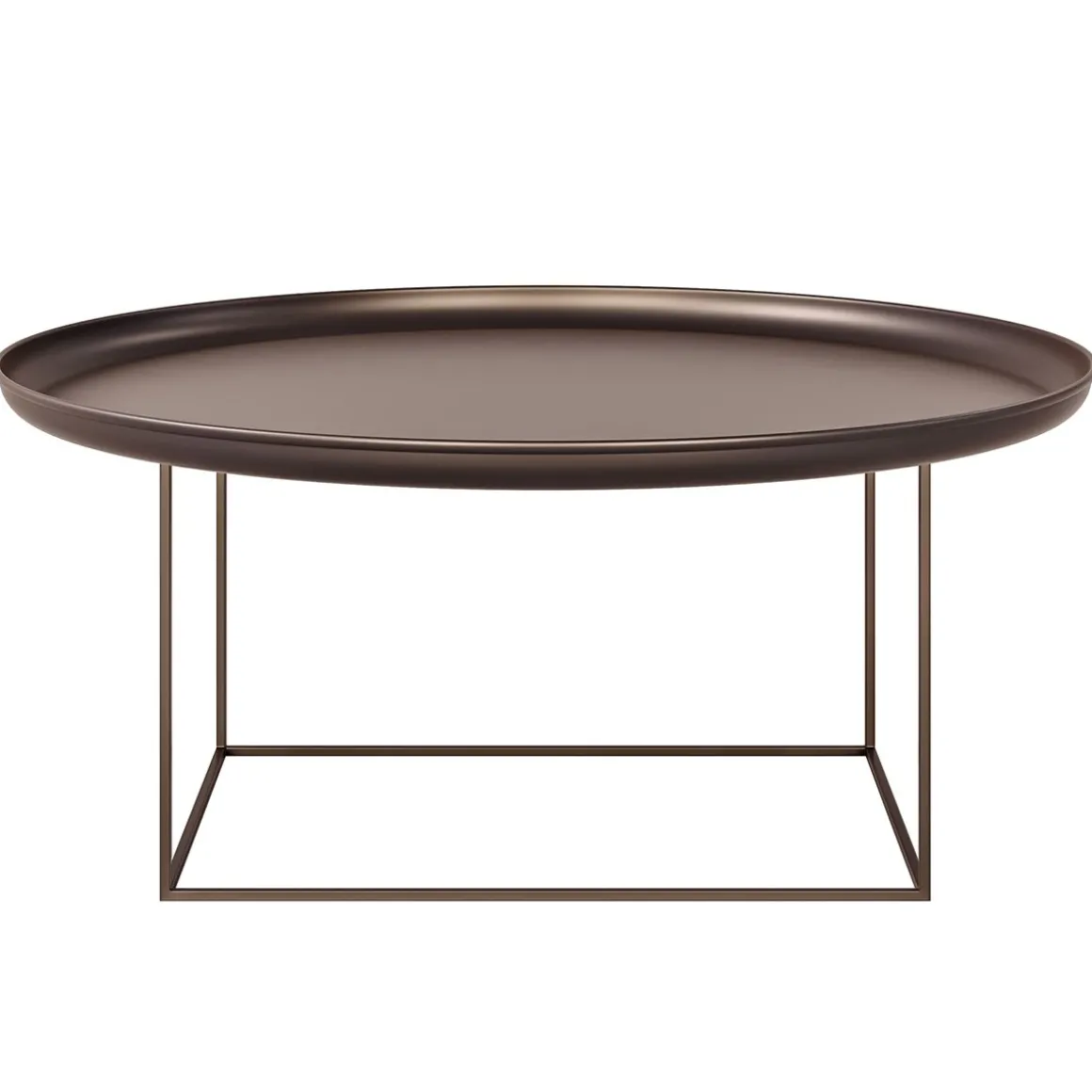 Une série de tables d’appoint et de tables basses multifonctionnelles avec un plateau en métal filé placé librement sur un cadre en métal. Fabriquée en acier thermolaqué, la table Duke est un meuble multifonctionnel disponible en trois tailles différentes. Le dessus du plateau peut facilement être soulevé et la base peut être tournée à différentes hauteurs. La combinaison des trois tailles crée un paysage qui complète n’importe quel décor.