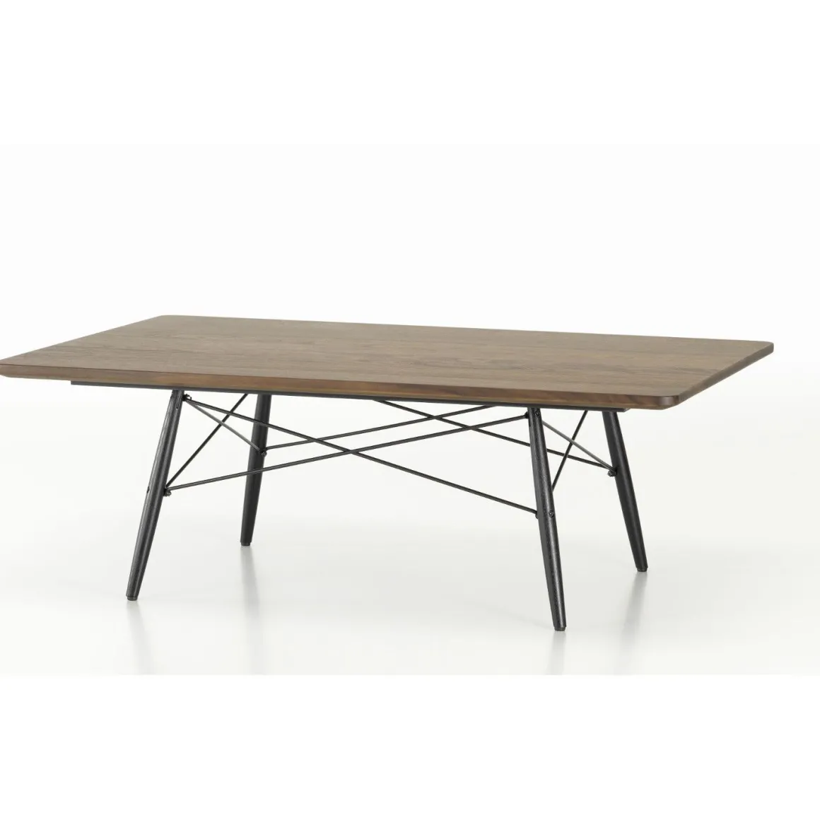 La réédition de la Eames Coffee Table, qui a été développée par Vitra en collaboration avec le Eames Office, évoque l’esprit des premières pièces uniques : fabriquée en matériaux raffinés, cette table basse de haute qualité est à la fois un objet précieux et un meuble utilitaire. Les plateaux carrés ou rectangulaires sont réalisés en placage de palissandre ou en noyer américain massif. Alliant des pieds en bois noir à des croisillons métalliques, le piètement offre une structure stable et souligne l’élégance discrète de l’Eames Coffee Table.