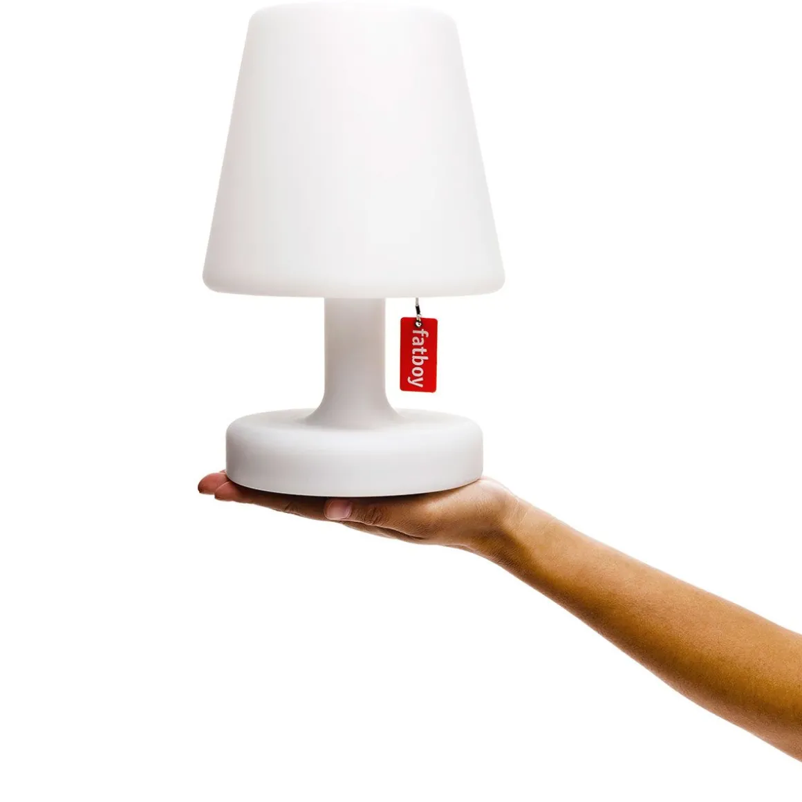 Voici la lampe de table Edison The Petit, la lampe de chevet mobile de Fatboy. Cette lampe de table peut être la lampe parfaite pour un éclairage romantique sur votre balcon ou la lampe pratique sur votre bureau. Comme le suggère son nom, elle est le modèle réduit de la robuste et portable l’Edison The Grand. Elle vous étonnera grâce à ses différents mode de puissance. Elle pourra vous fournir une lumière douce mais aussi une lumière puissante. La lampe « Edison the Petit » s’allume simplement en tirant sur la plaquette rouge imprimée « Fatboy ». La tirette permet également de varier l’intensité lumineuse (3 intensités possibles). Grâce à sa petite taille, vous pourrez l’emmener n’importe où. Grâce à l’utilisation de la technologie LED, la lampe est éclairée de la tête au pied. Cette lampe vous garantie une autonomie allant de 6 à 24h.