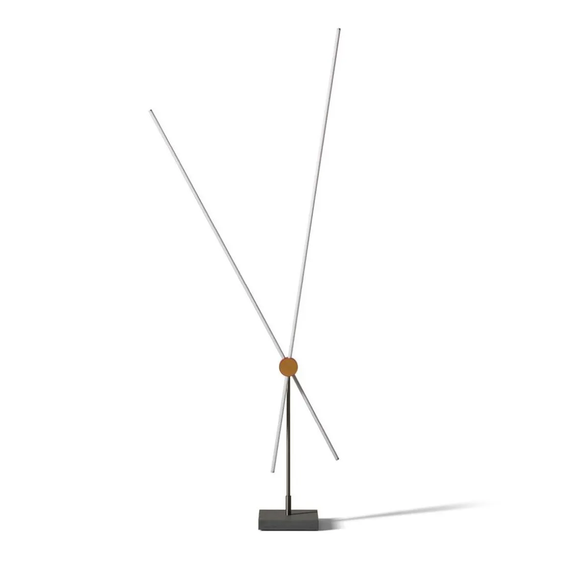 La lampe est composée de deux lignes lumineuses qui peuvent être combinées dans différentes compositions grâce aux connexions en métal noir de forme circulaire, agrémentées de détails en argent, qui recèlent une technologie de pointe. Les articulations peuvent être ouvertes à 30 degrés, vers la gauche ou vers la droite, pour créer différents effets. Chaque ligne lumineuse peut être tournée à 360 degrés pour régler la position et l’intensité de la lampe.