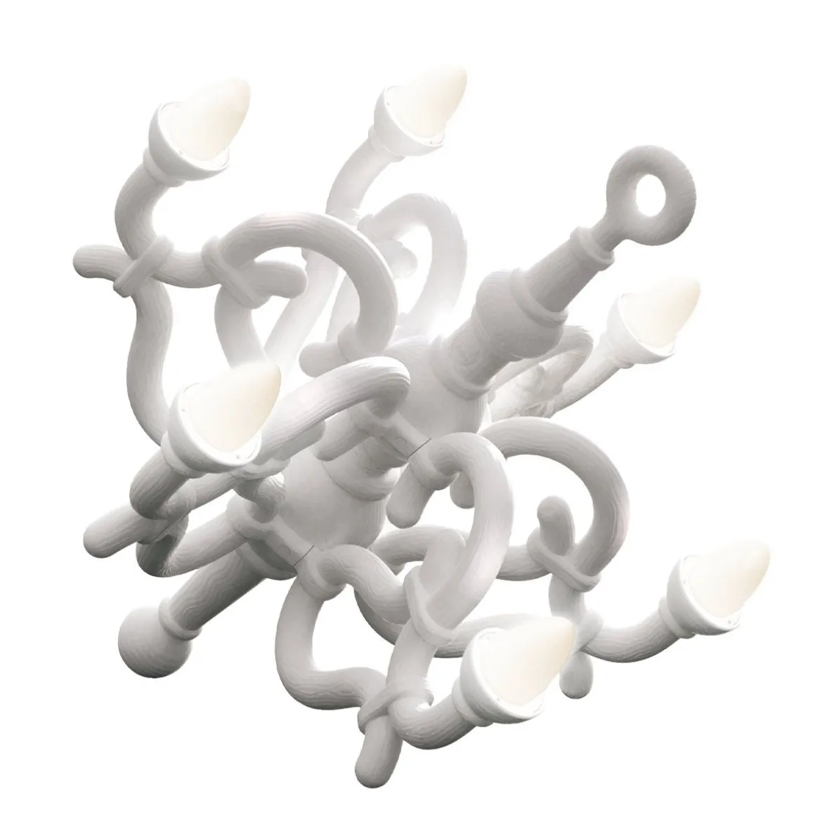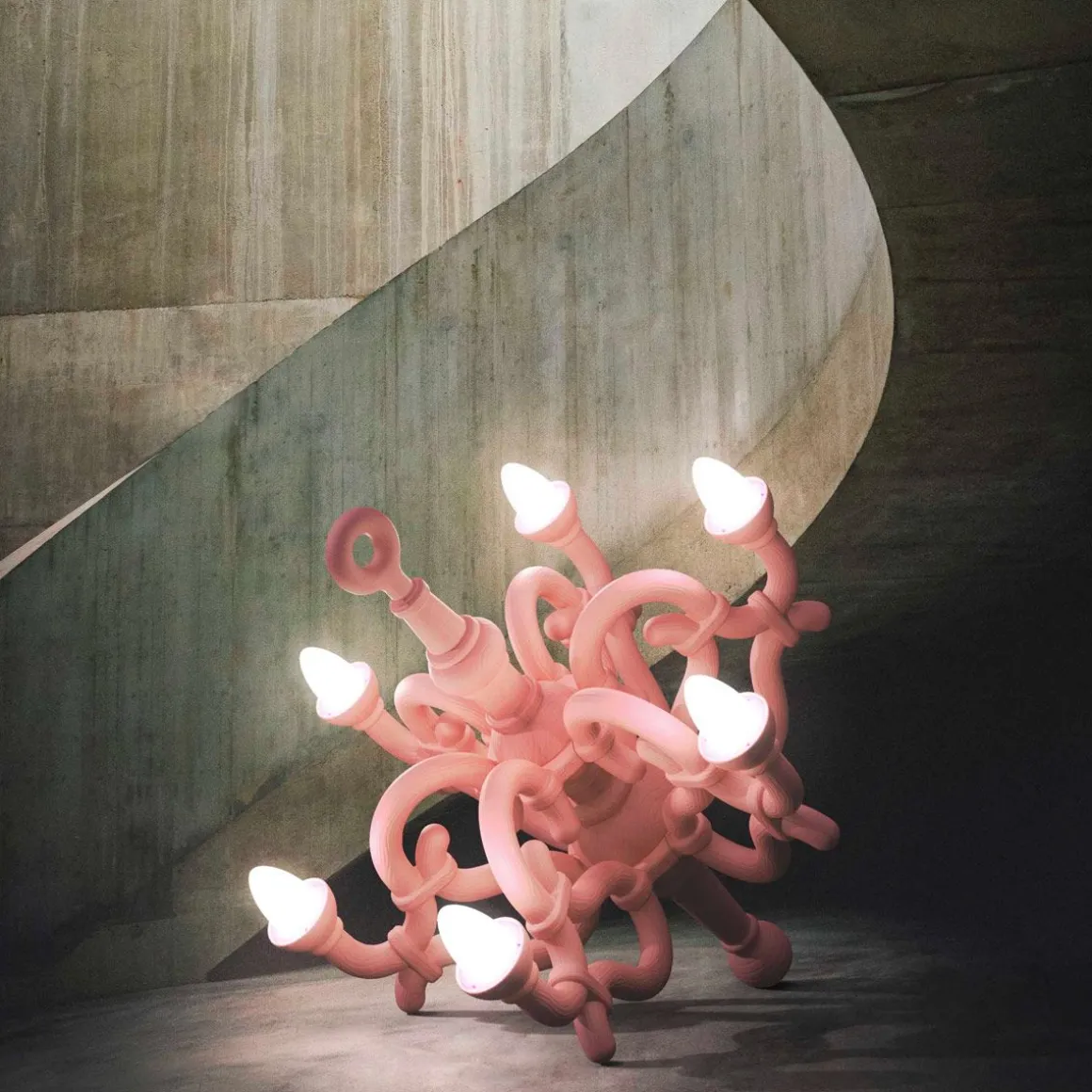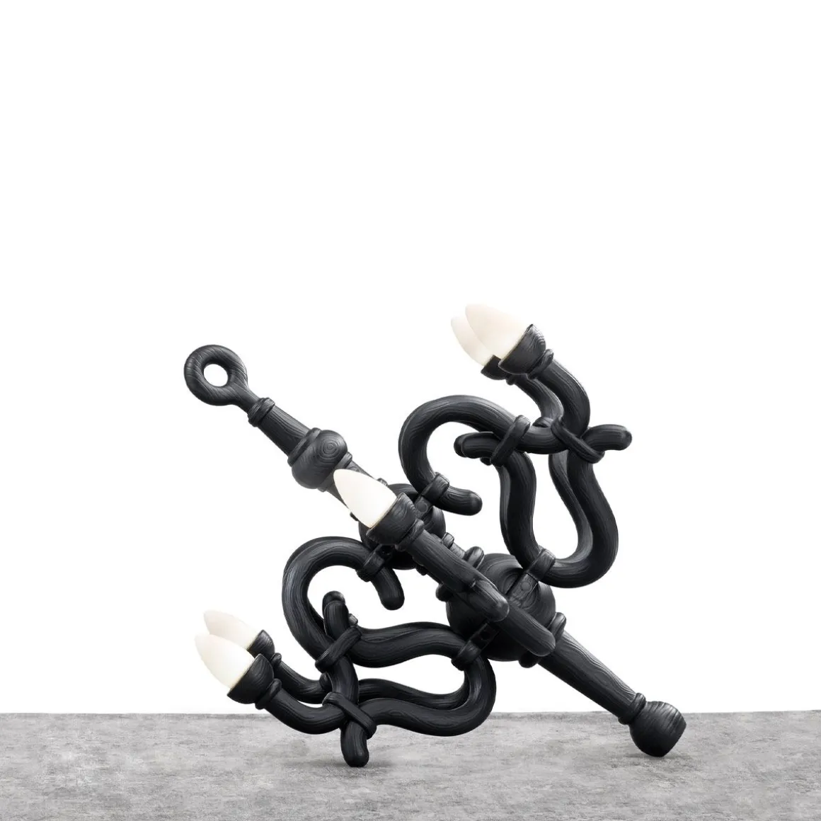 Fallen chandelier de Qeeboo par Studio Job. Le lustre Fallen est un lampadaire de taille XL adapté aux environnements intérieurs et extérieurs, conçu par Studio Job. Influencé par les courbes classiques Thonet du XIXe siècle, cet objet hors d’échelle de 2 mètres de diamètre voyage à travers les temps pour être le protagoniste exceptionnel de chaque lieu où il vit et vous accompagner dans un rêve d’élégance intemporel.