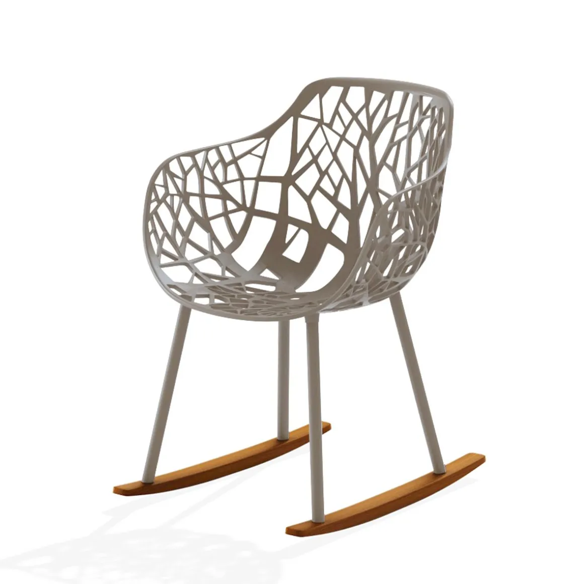 En aluminium extrudé et moulé sous pression, Forest est une référence explicite aux motifs graphiques qui se dessinent, entre lumières et ombres, au sein d’un bois. Déclinée en plusieurs coloris, la collection de chaises et transats est conçue pour un usage extérieur et pour des occasions conviviales: boissons, brunch en plein air, dîner informel …