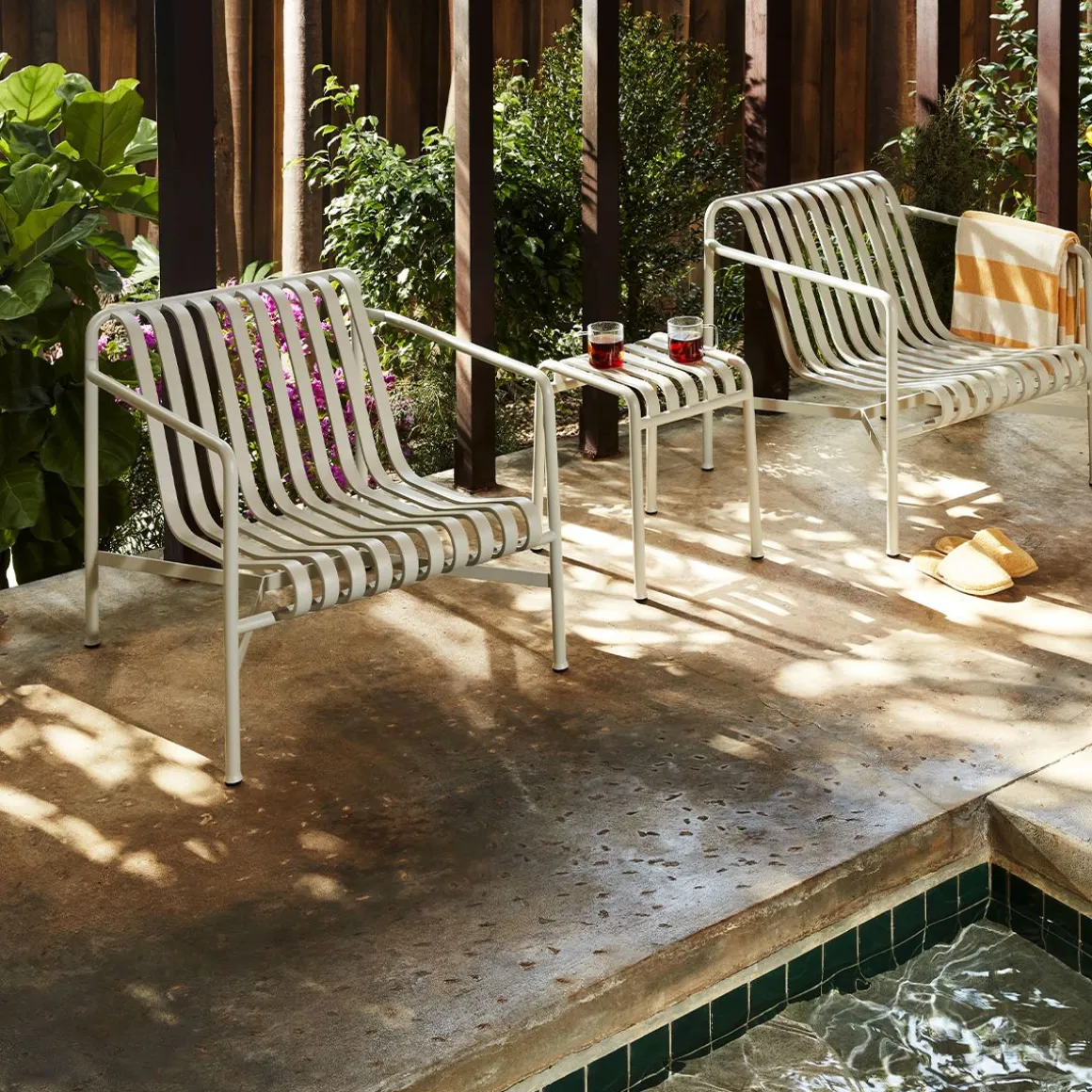 Fauteuil bas Palissade de Hay. La chaise de jardin basse Palissade est le mélange parfait entre design et modernité. Palissade est une collection de meubles d’extérieur conçu par Ronan et Erwan Bouroullec pour HAY. La collection a été conçue pour s’adapter à une grande variété d’environnements: cafés, restaurants, jardins, terrasses et balcons. La construction permet une large gamme de typologies avec un langage formel commun. Des tabourets et des bancs à des chaises et des tables, des chaises longues et des canapés, la collection comprend 13 éléments différents, unis non seulement par leur image graphique, mais aussi par leurs caractéristiques communes: ils sont forts sans encombre, élégant sans être fragiles.