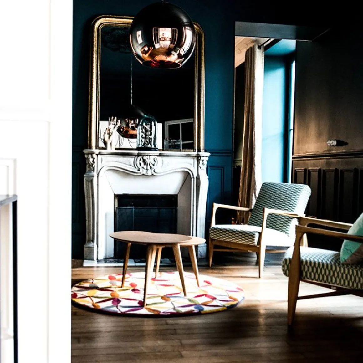 Matériaux : coussin en mousse HR bi-densité, piètement en chêne massif naturel ou teinté noir mat, revêtement en tissu ou velours
