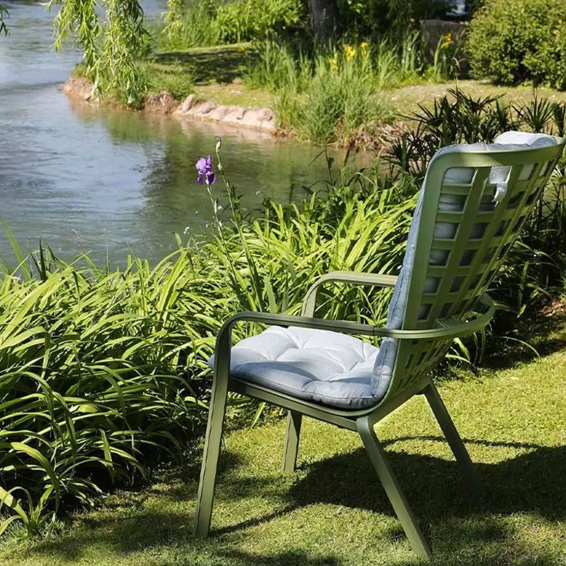 Folio est un fauteuil de relaxation d’extérieur, fabriqué en résine fibre de verre ajourée avec des motifs à carrés et une finition mate. Le fauteuil présente un dossier enveloppant relié à l’assise généreuse abaissée sans discontinuités : un étreinte structurelle unique et raffinée unique en son genre inclinable dans deux positions de relaxation.