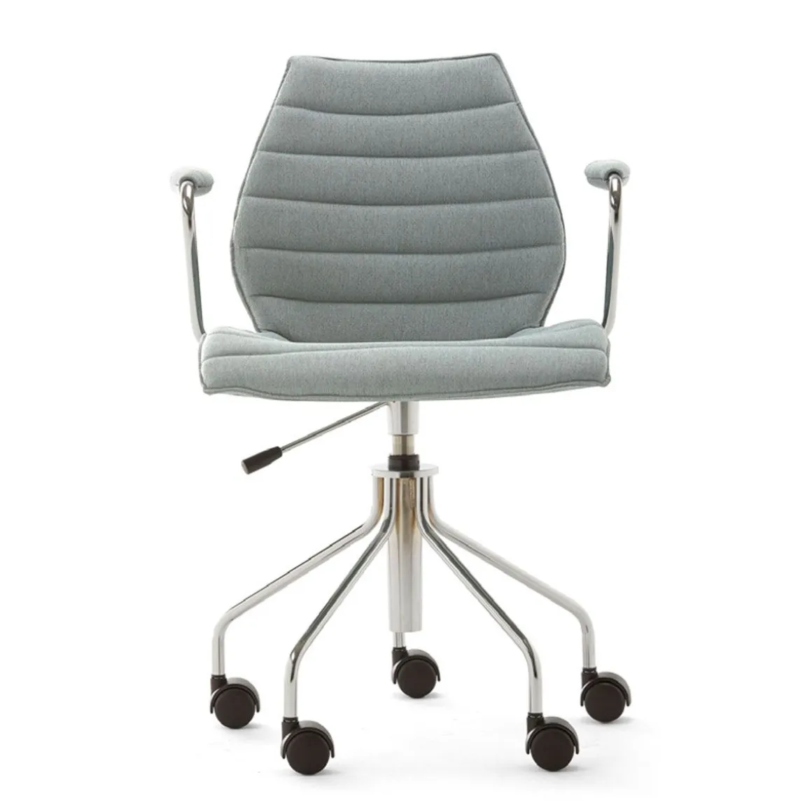 Les chaises de bureau Maui forment une famille riche en variétés de couleurs et de formes brutes et douces, à même de répondre aux exigences spécifiques des espaces collectifs ou privés. Grâce à sa conception, la chaise Maui est empilable et peut être fixée, à l’aide d’un simple crochet arrière, à d’autres chaises du même type, rangée par rangée, à l’infini.