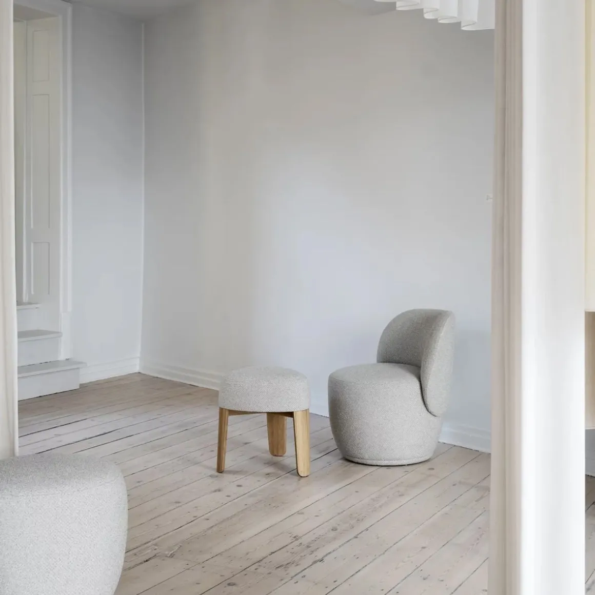 Une forme arrondie, accueillante et confortable. C’est ainsi que l’on peut décrire la série de meubles rembourrés KUON. Composé de 2 tabourets, en chêne clair et teinté, de 2 fauteuils, avec et sans fonction pivotante, et d’un 2 places, diverses utilisations possibles sont proposées. La série conçue par le designer japonais Kazushige Miyake avec un tissu bouclé durable.