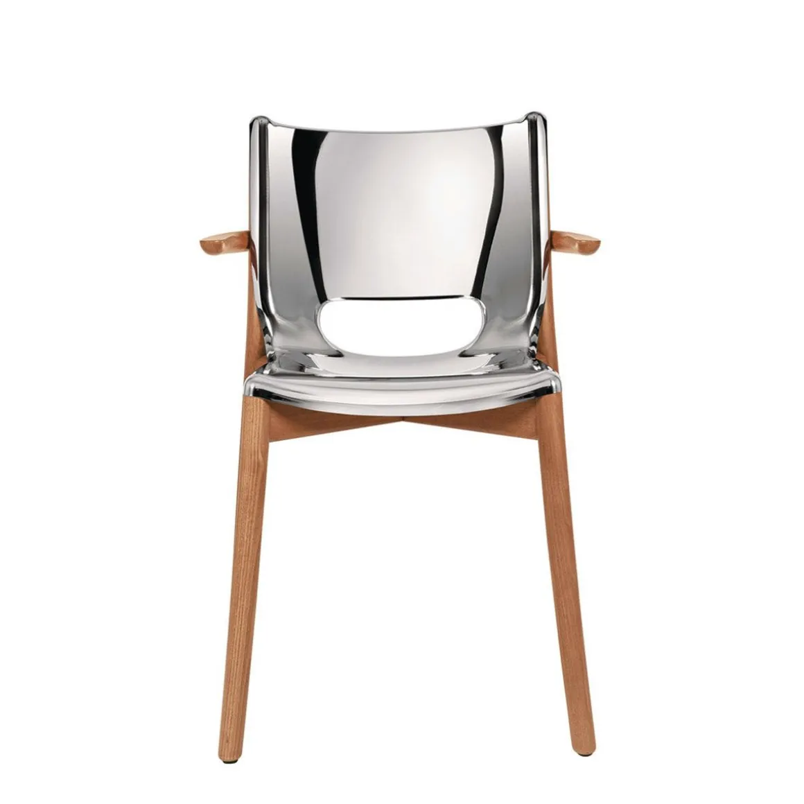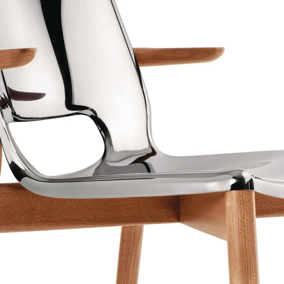 Le mariage original de matières, l’acier et le bois de hêtre, donne naissance à la chaise de la Poêle Collection, une série essentielle de meubles dessinés par Philippe Starck et conçus pour dialoguer avec aisance dans des espaces à la personnalité différente. Dans le design de cette chaise, le bois de la structure est harmonieusement enveloppé par la plaque d’acier qui devient l’élément central de la composition. Dans un jeu de perceptions inversées, la chaise en métal apparait plus chaude et plus organique que les éléments en vois et révèle ainsi les possibilités expressives inattendues de l’acier.