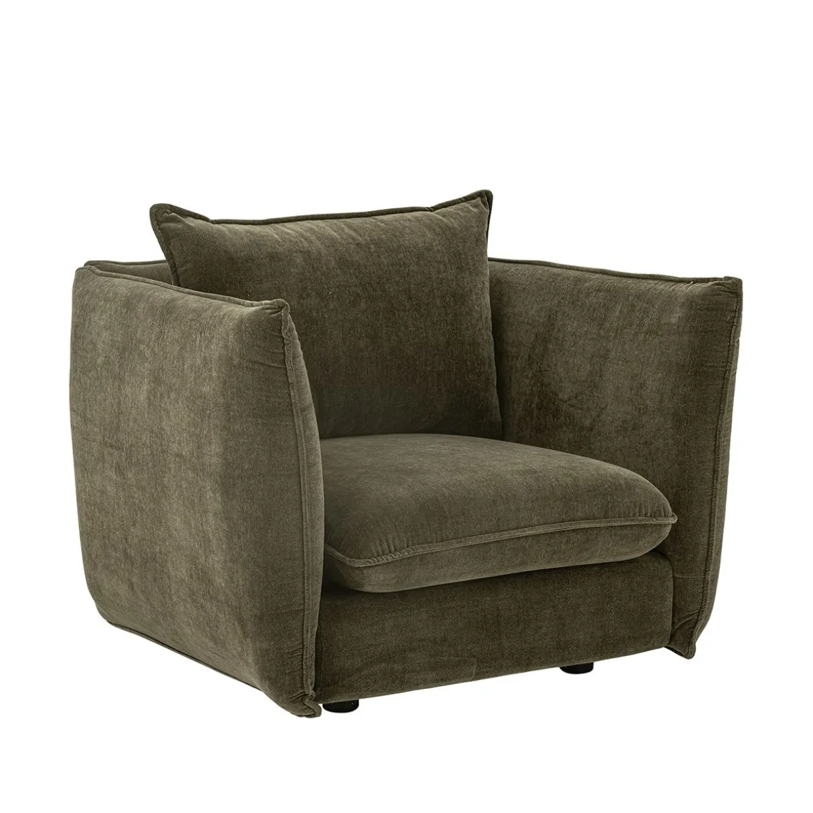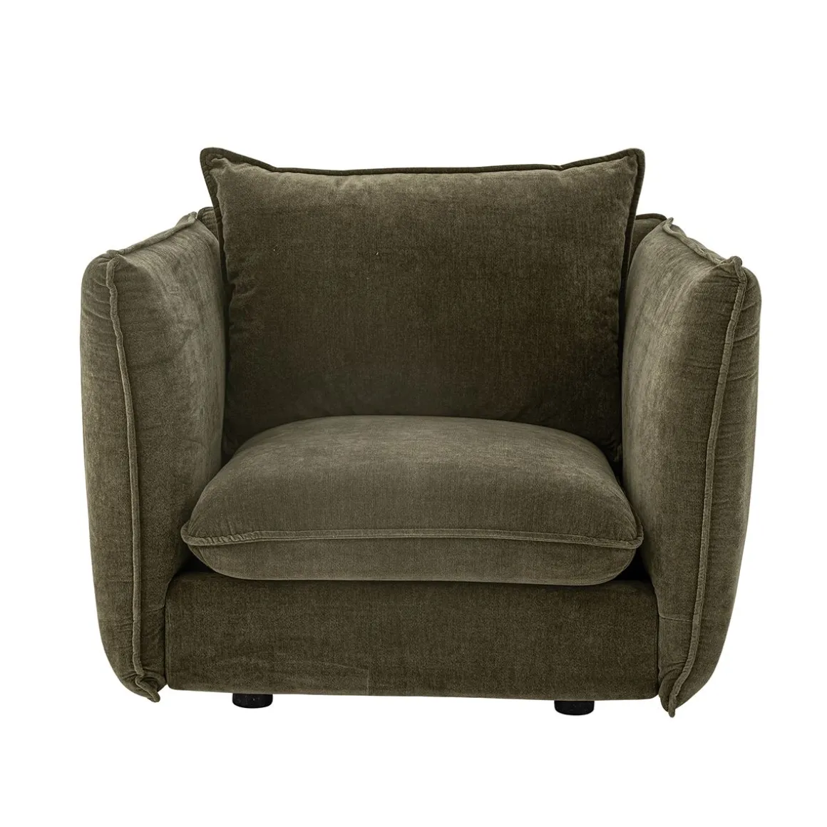 Le Chaise de salon Austin de Bloomingville est fait de velours doux dans une couleur verte foncée et poussiéreuse. Le tissu est en polyester et est extrêmement durable avec un martindale de 77 000. Avec son design élégant et son haut niveau de confort, le fauteuil lounge Austin s’adapte à tout intérieur.
