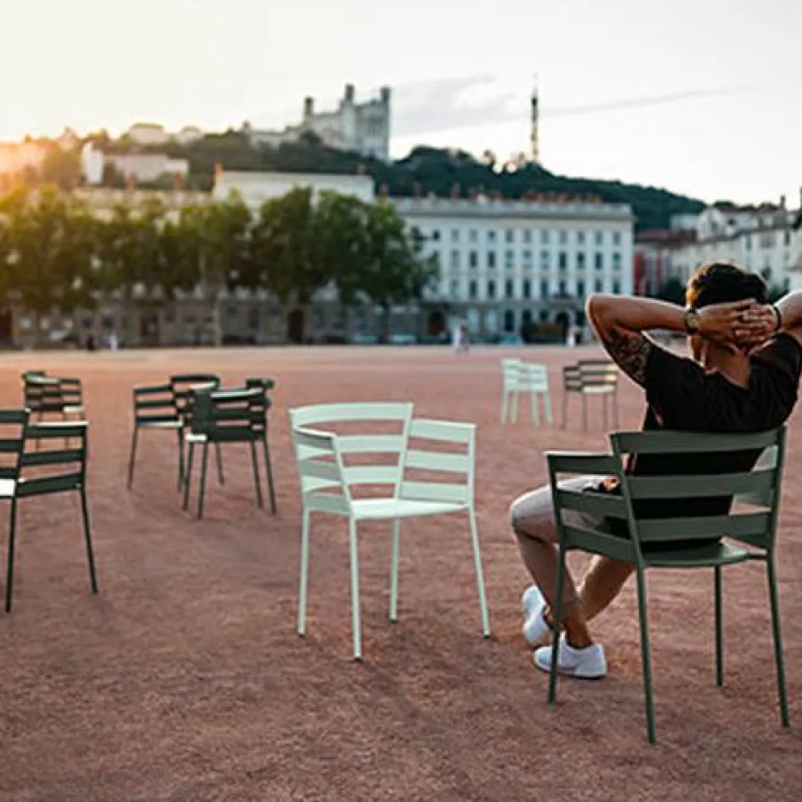 Le fauteuil en métal Rythmic joue toutes partitions, en solo ou en association avec les tables de la collection Luxembourg, au jardin et pourquoi pas à l’intérieur.