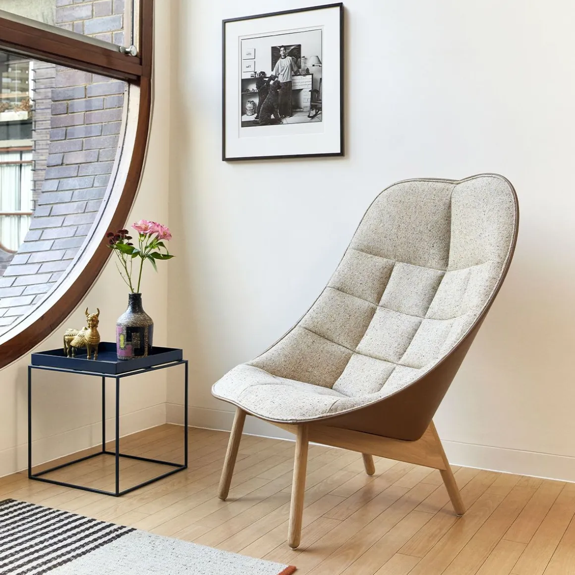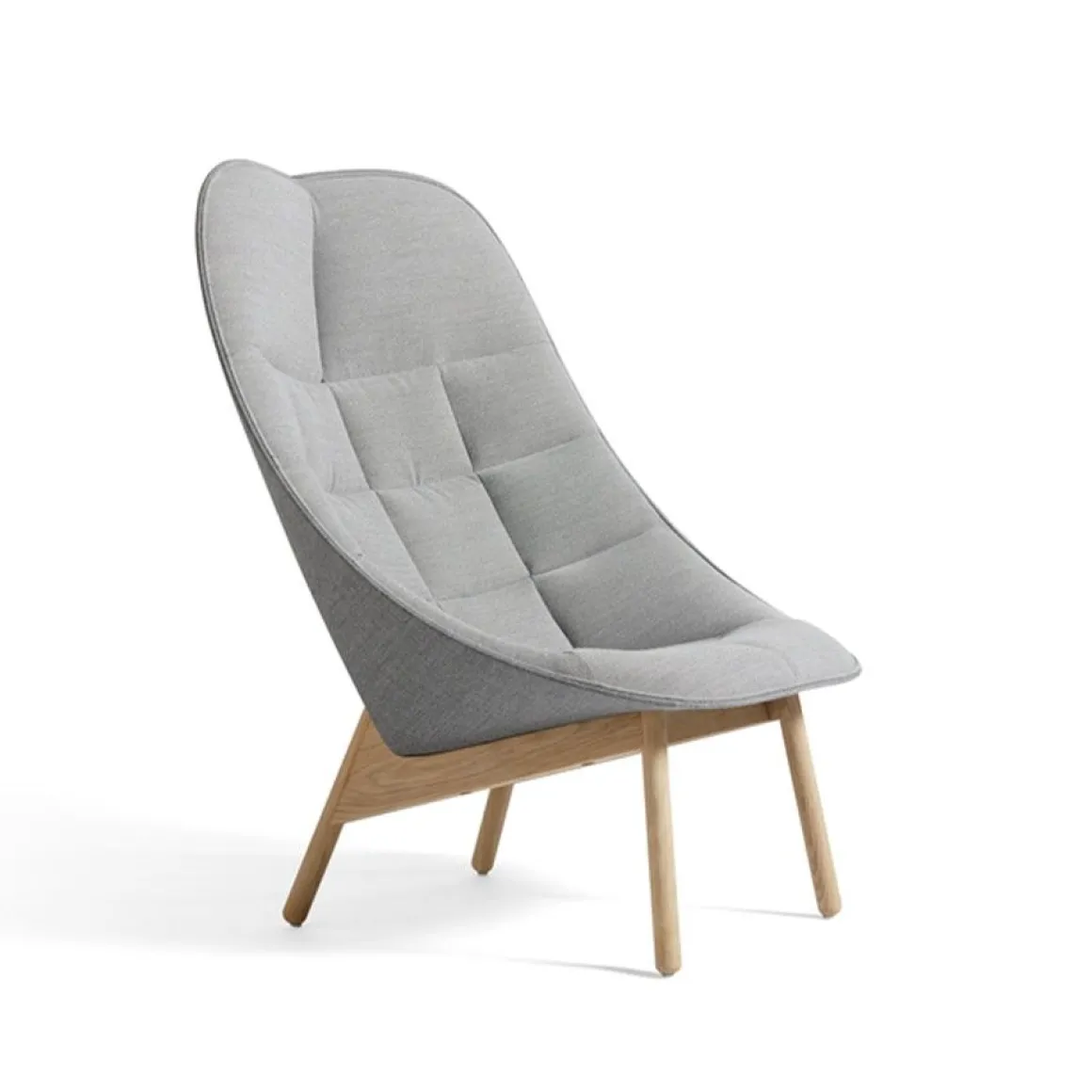 Fauteuil Uchiwa de Hay. Uchiwa est une fauteuil spacieux, prenant sa forme douce et ouverte de l’éventail japonais traditionnel. Généreux et accueillant, nouveau et familier à la fois, le fauteuil se décline en deux versions rembourrées : dans un modèle matelassé plus doux pour un environnement plus domestique et en mousse moulée pour un contexte contractuel plus exigeant. La base est disponible en chêne naturel ou teinté.