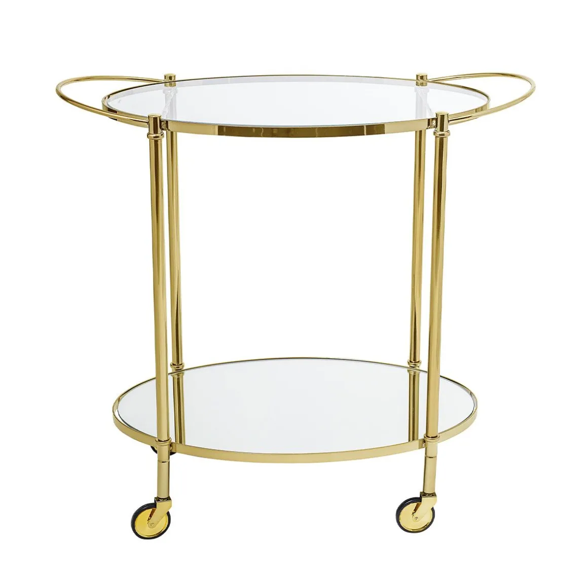 Et voilà, les boissons sont servies ! La table de bar Fine crée une atmosphère élégante avec ses lignes raffinées et son aspect doré. Les poignées facilitent son déplacement.