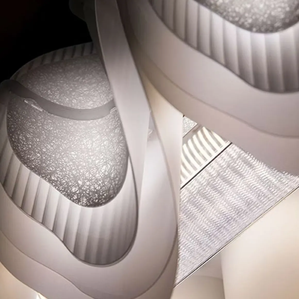 Fiordlys s’inspire des vagues sinueuses des aurores boréales et des mouvements des falaises nordiques. Dans un contexte métropolitain où la vitesse et le chaos perturbent l’équilibre humain, Fiordlys apporte la brise fraîche et calme de la nature au centre de la maison. Fiordlys est hautement personnalisable dans ses finitions. En effet, conçue en deux versions de suspension – ronde et linéaire – et en une version d’applique murale, elle est disponible en trois finitions différentes : White, Gold et Silver.
