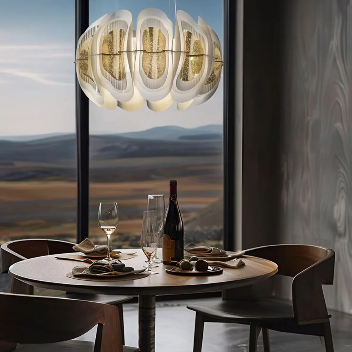 Fiordlys s’inspire des vagues sinueuses des aurores boréales et des mouvements des falaises nordiques. Dans un contexte métropolitain où la vitesse et le chaos perturbent l’équilibre humain, Fiordlys apporte la brise fraîche et calme de la nature au centre de la maison. Fiordlys est hautement personnalisable dans ses finitions. En effet, conçue en deux versions de suspension – ronde et linéaire – et en une version d’applique murale, elle est disponible en trois finitions différentes : White, Gold et Silver.