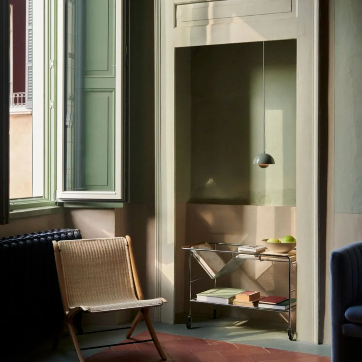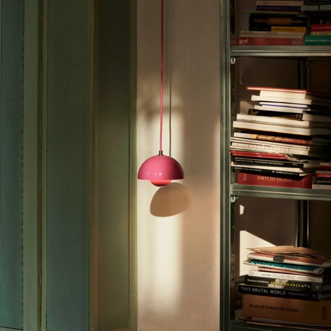 Flowerpot VP10 de &Tradition par Verner Panton. Élément apprécié de la collection &Tradition depuis 2010, la suspension Flowerpot est désormais disponible dans une nouvelle taille plus petite. Mesurant 16 cm de diamètre, il est disponible dans les 14 coloris, ainsi que dans la réédition d’un original Panton présentant le motif de vagues noir et blanc.