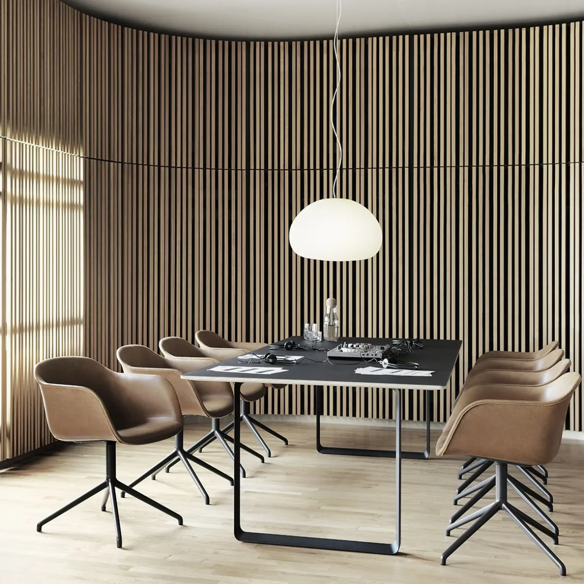 Suspension design Fluid de Muuto, créé par le trio suédois Claesson, Koivisto et Rune. Elle offre un élément design élegant pour la maison, le bureau, ou un restaurant. Avec sa forme douce et son éclat, elle a un caractère non-envahissant qui s’intègre n’importe où.