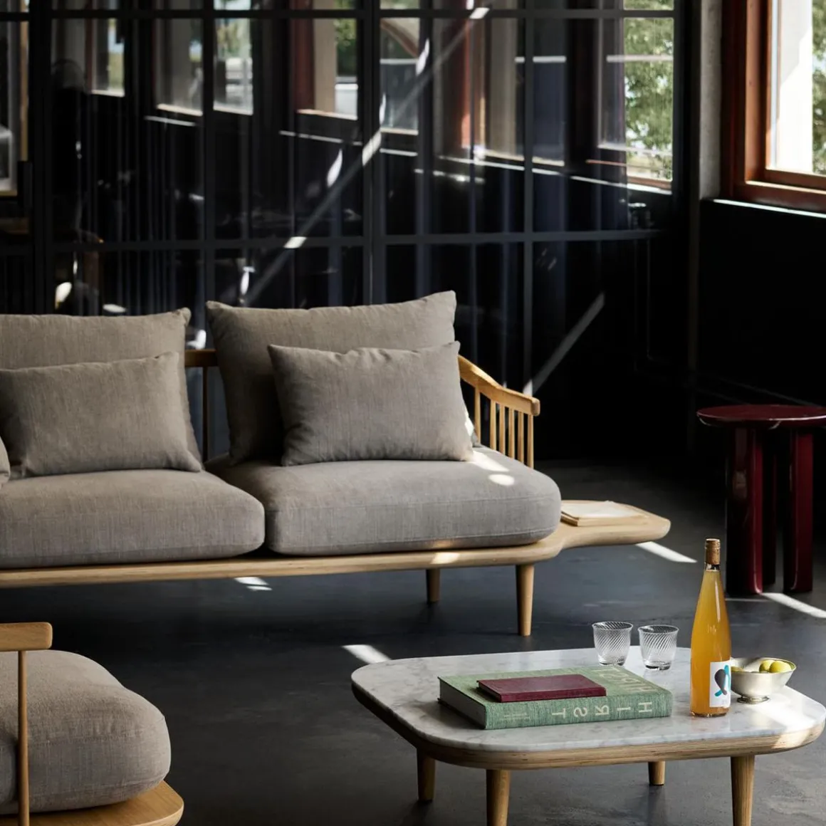 Le canapé Fly a été créé par le duo Danois Space. Contrairement à beaucoup de fauteuils et canapés de la tradition scandinave, la série Fly n’impose pas sa position à l’utilisateur. L’assise est conçue de telle façon que l’utilisateur comme il veut les coussins en fonction de la position qu’il veut adopter. Le canapé Fly est en chêne massif disponible en finition huilé blanchi ou huilé fumé; deux finitions qui permettent de garder la beauté du bois au fil du temps. Le modèle Fly SC3 possède des tables de chevet de chaque côté ce qui forme un cadre original. Un canapé élégant, confortable et pratique qui apporte également une touche design à votre intérieur.
