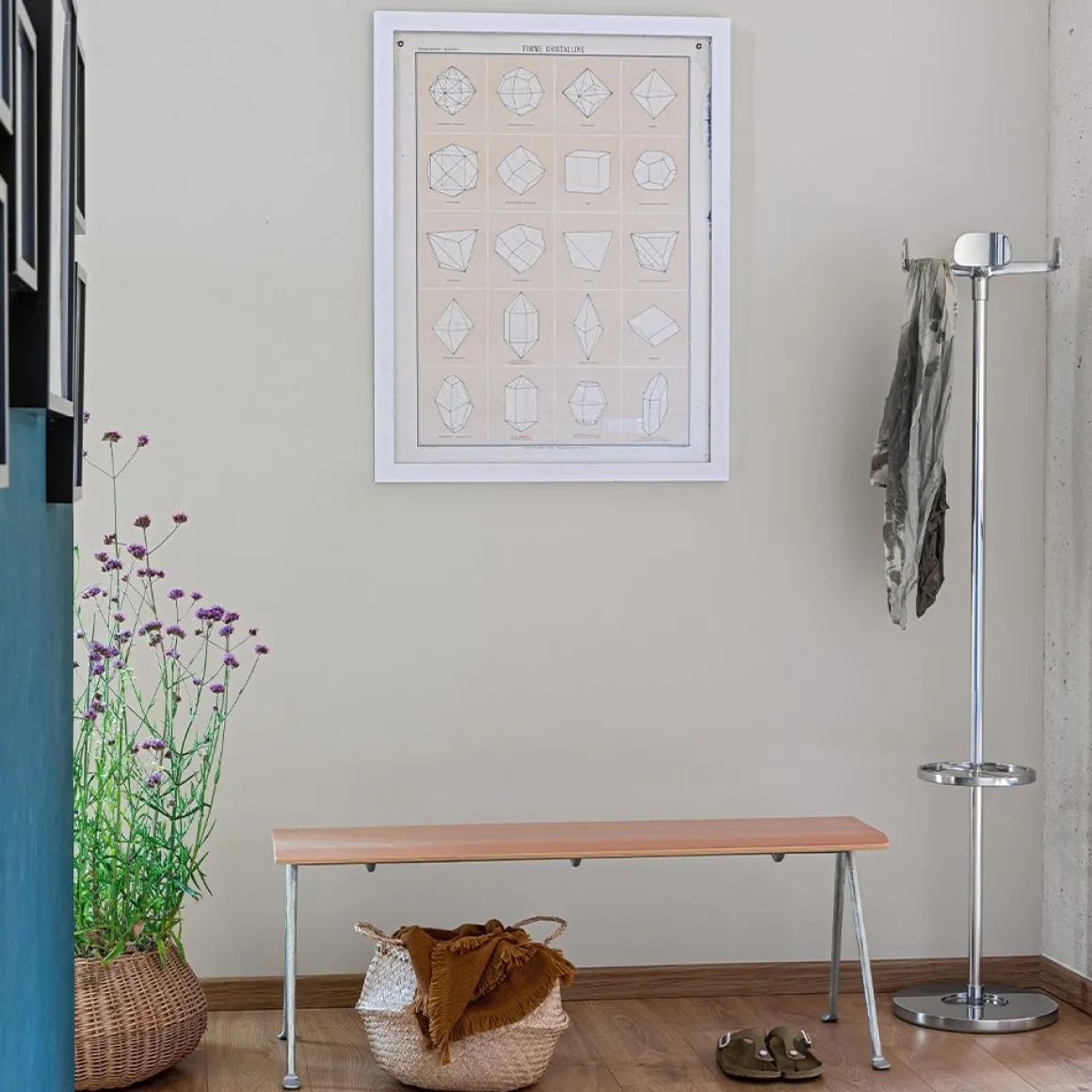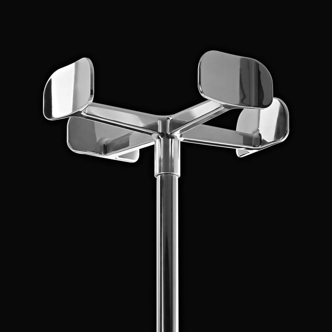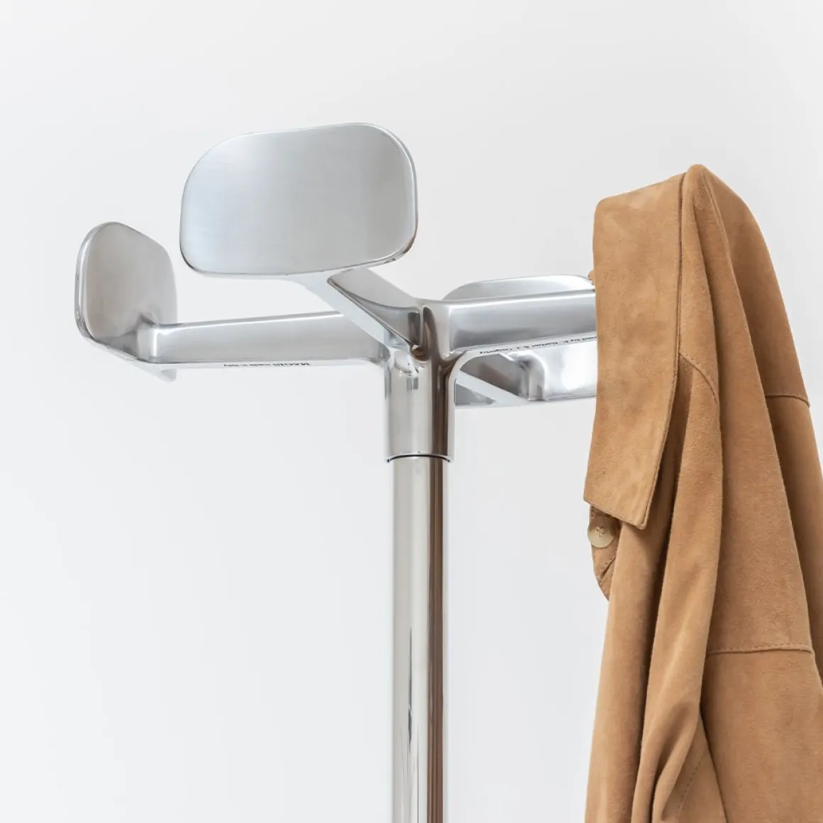 Matériaux: base et crochets en fonte d’aluminium, poli ou verni. Structure en tube d’aluminium, poli ou verni.