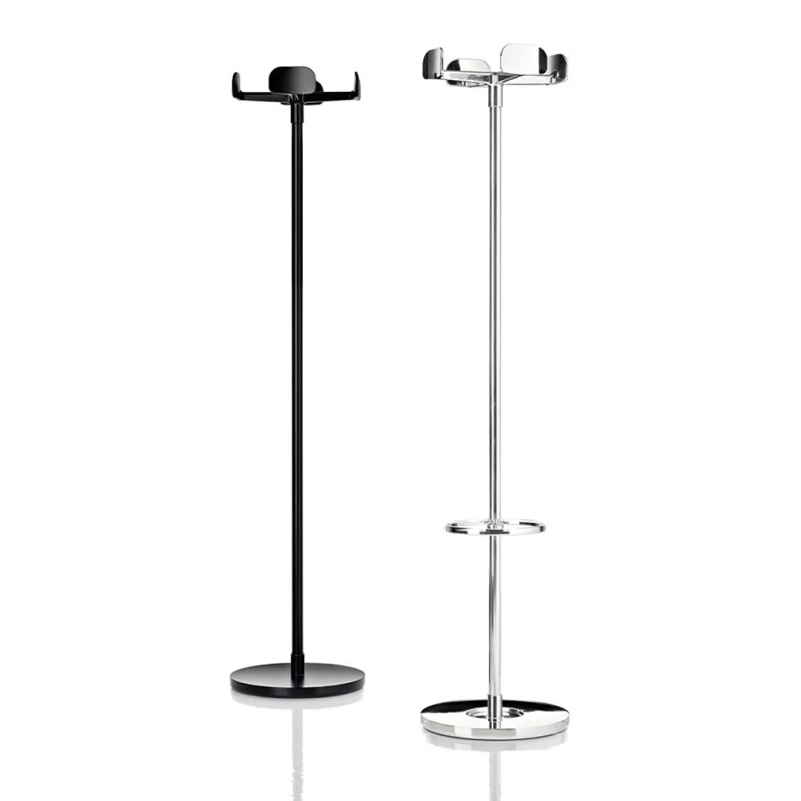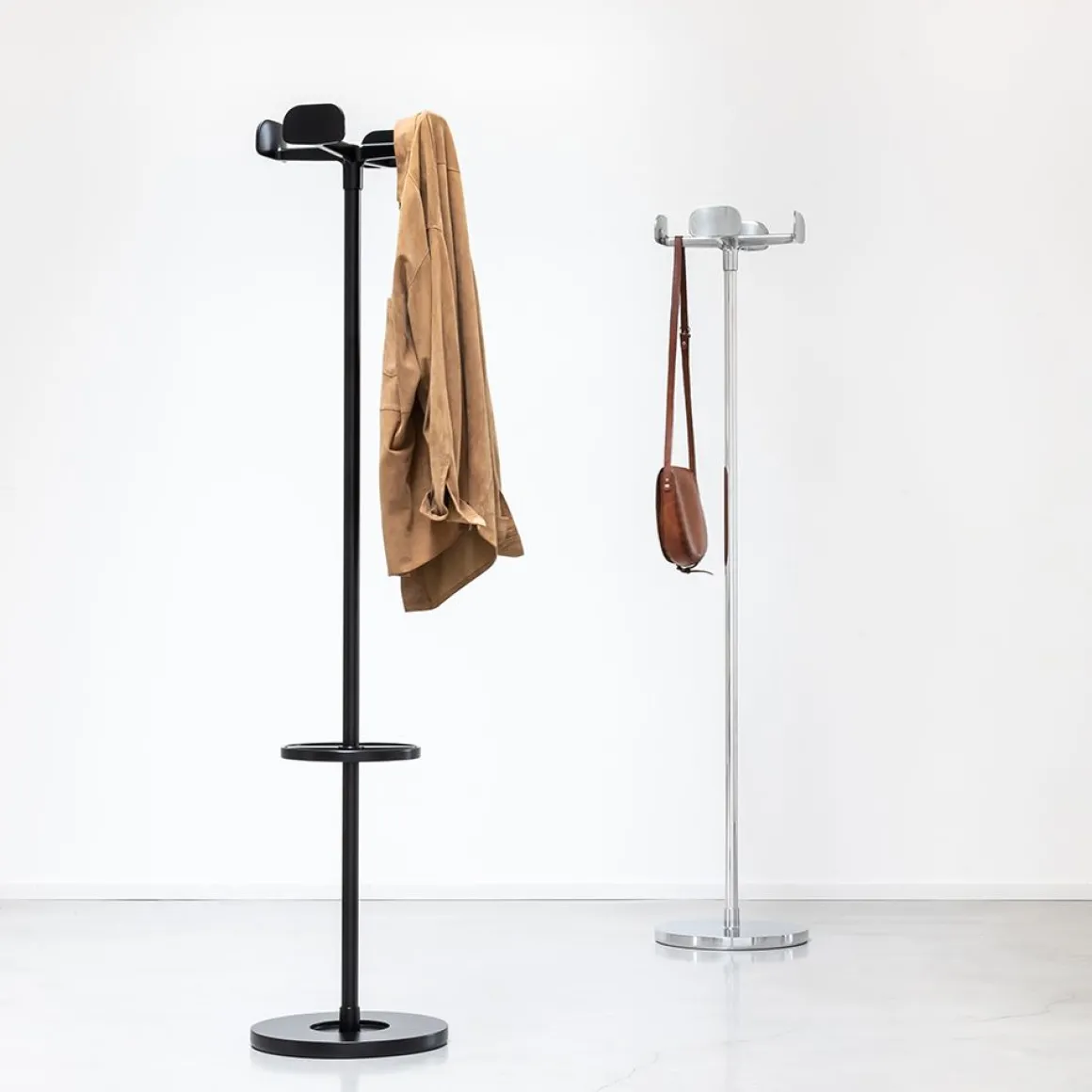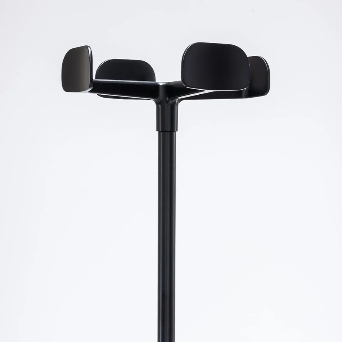 Porte manteaux Four Leaves de Magis, disponible aussi avec porte-parapluie. « Four Leaves est un produit intelligent qui s’adapte bien à n’importe quel environnement, tant public que domestique. Un portemanteaux doit sembler fantastique qu’il soit couvert de vêtements ou pas et c’est avec cette idée en tête que nous avons évité aussi bien le fonctionnalisme que la fantaisie. Le projet a abouti après des centaines d’esquisses et de prototypes, quand nous avons trouvé une forme si simple qu’elle semblait être le résultat d’une évolution plutôt que d’un dessin. Les « feuilles » soutiennent parfaitement les manteaux et les bras servent de tringles pour les cintres. La base, les patères et l’anneau porteparapluies en option sont en fonte d’aluminium, tandis que la tige est en aluminium extrudé de manière à donner à toute la pièce une finition brillante naturelle. » Edward Barber & Jay Osgerby